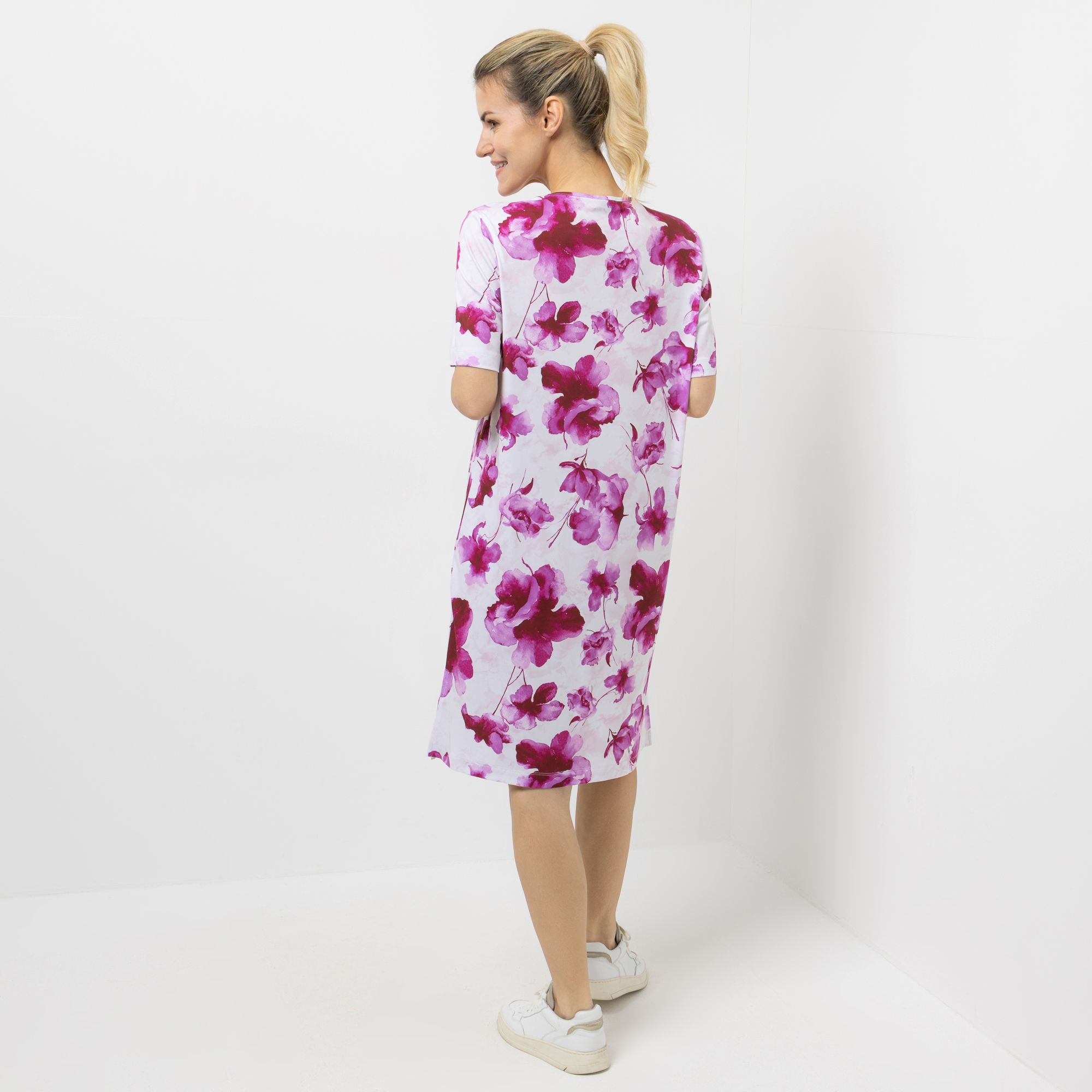 Mit dem Jersey-Kleid von IN-PRINT, das mit seinem Allover-Druck und leger weiter Passform begeistert, bringst du frischen Wind in deinen Look und genießt bequeme Bewegungsfreiheit für jeden Tag.
