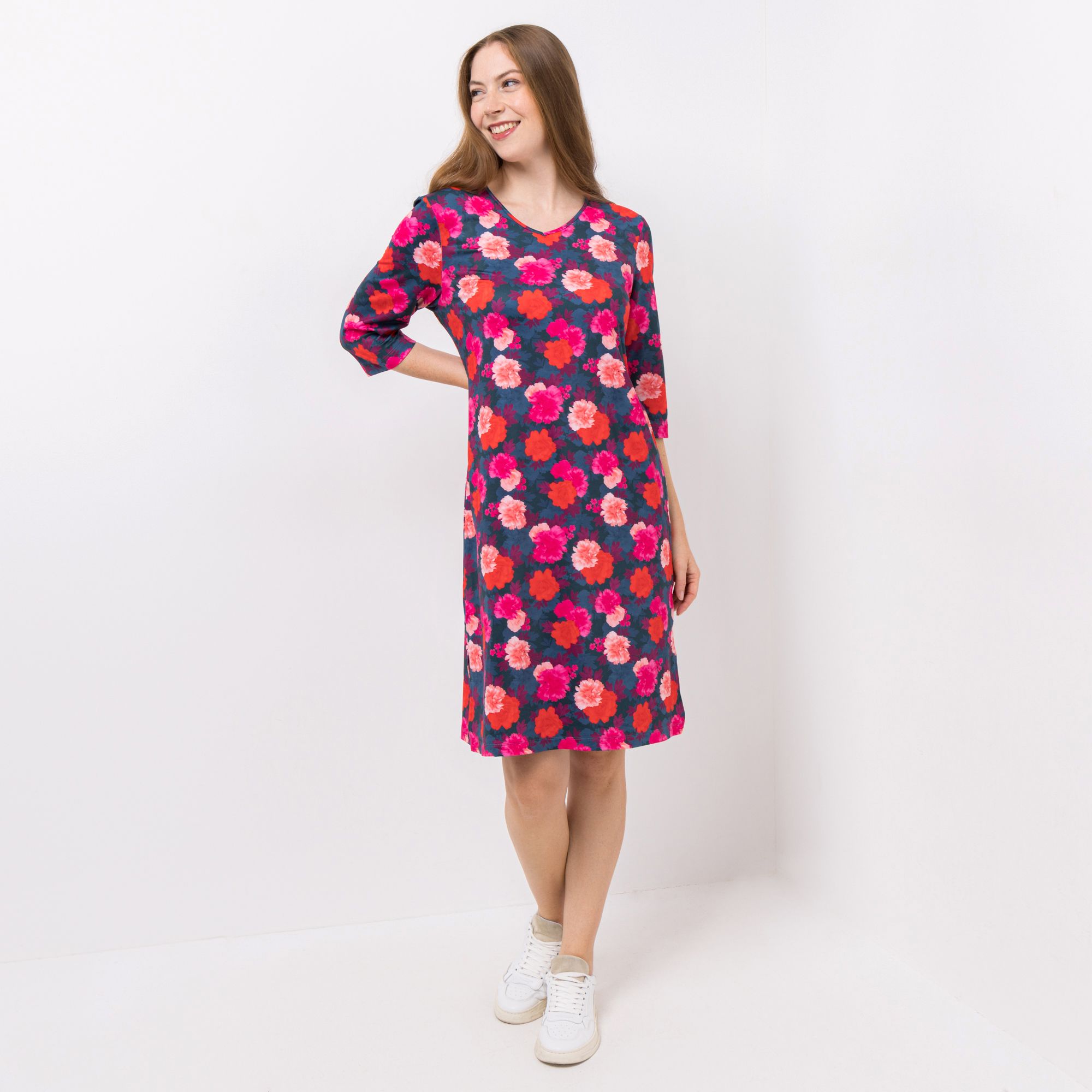 IN-PRINT Kleid 3/4-Arm V-Ausschnitt Winterware