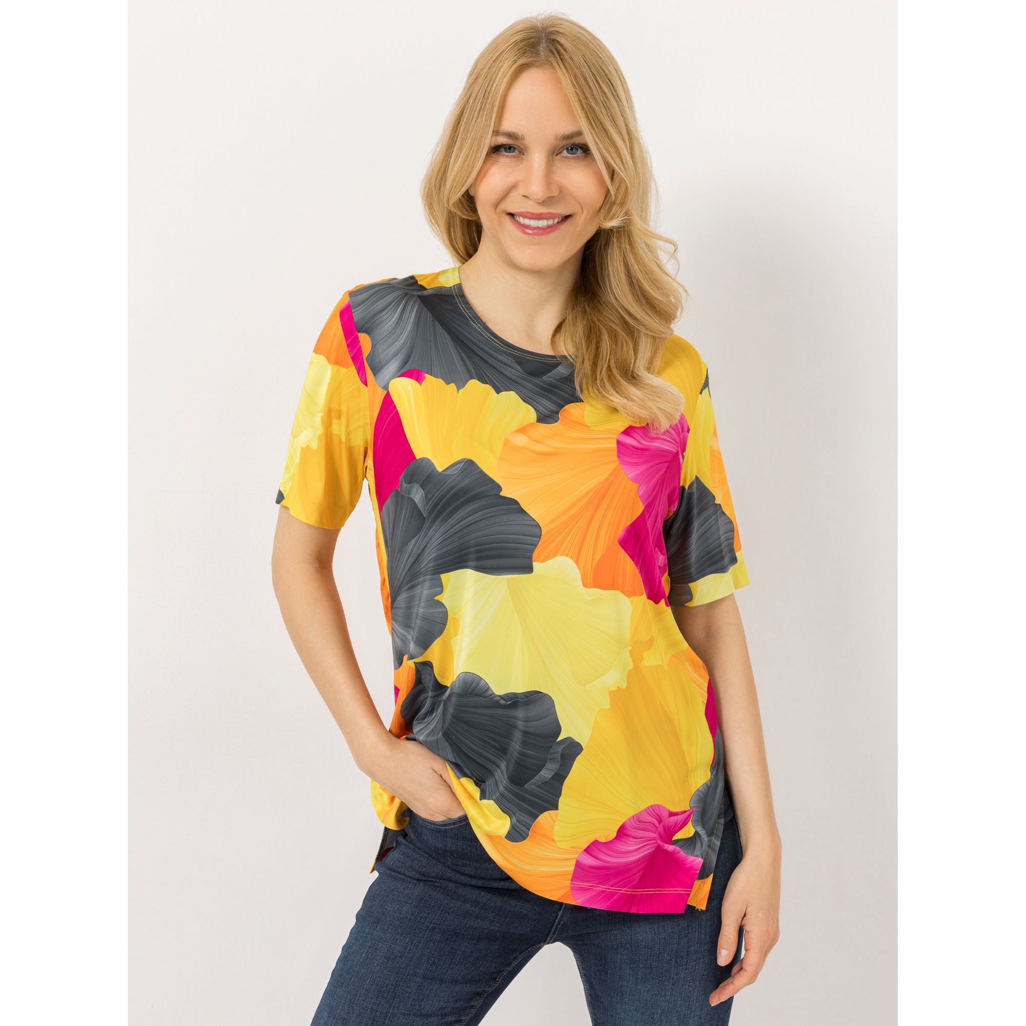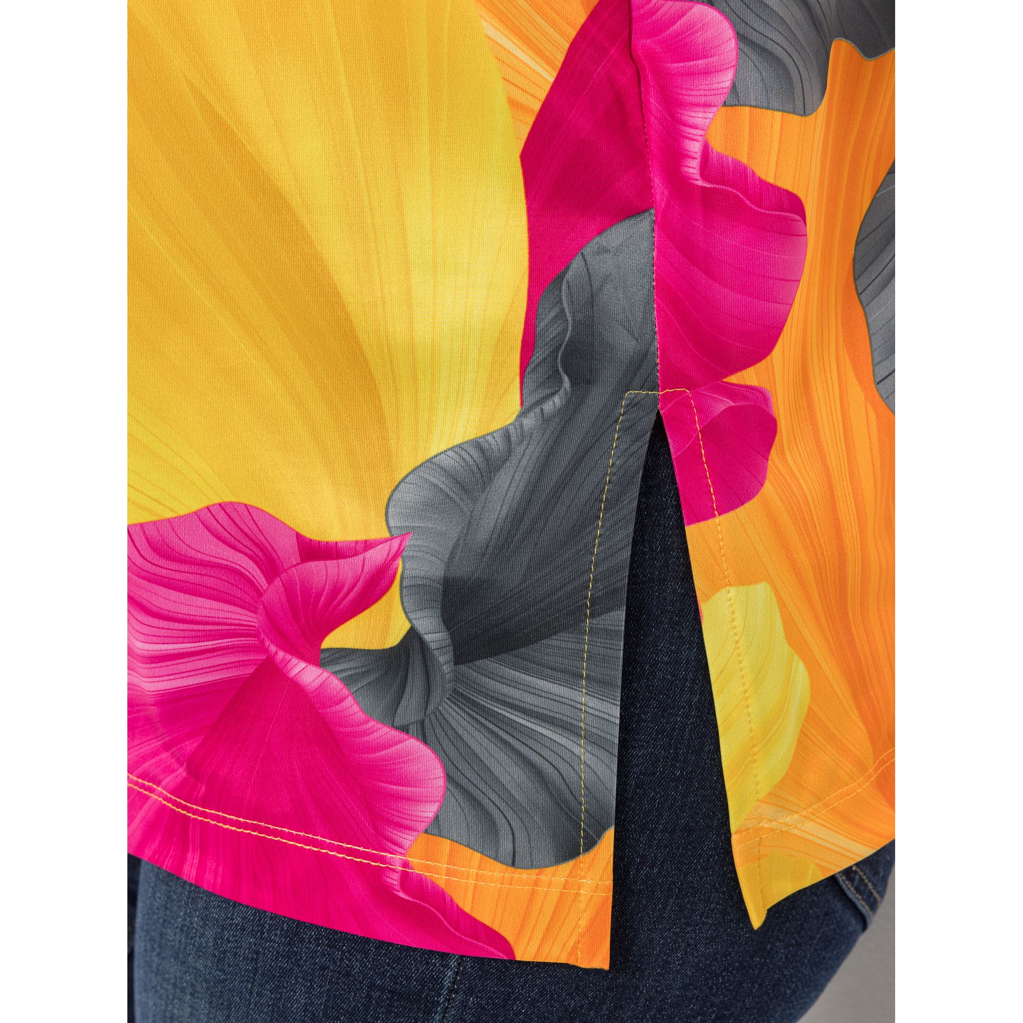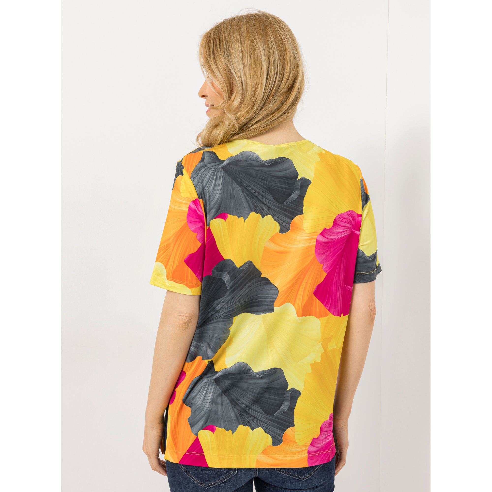 IN-PRINT Shirt, 1/2-Arm Rundhalsausschnitt Seitenschlitze Allover-Druck