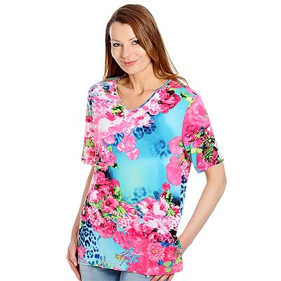 Das IN-PRINT Shirt mit Blütendruck kommt in temperamentvoller Lieblingsfarbe – ganz in Pink! Es hat einen V-Ausschnitt und Seitenschlitze.