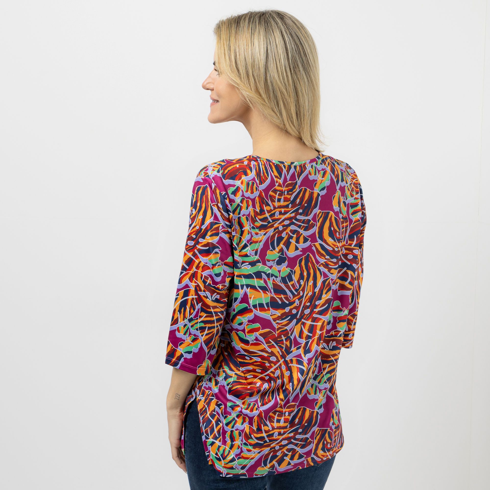 IN-PRINT Shirt, 3/4-Arm Rundhalsausschnitt Seitenschlitze