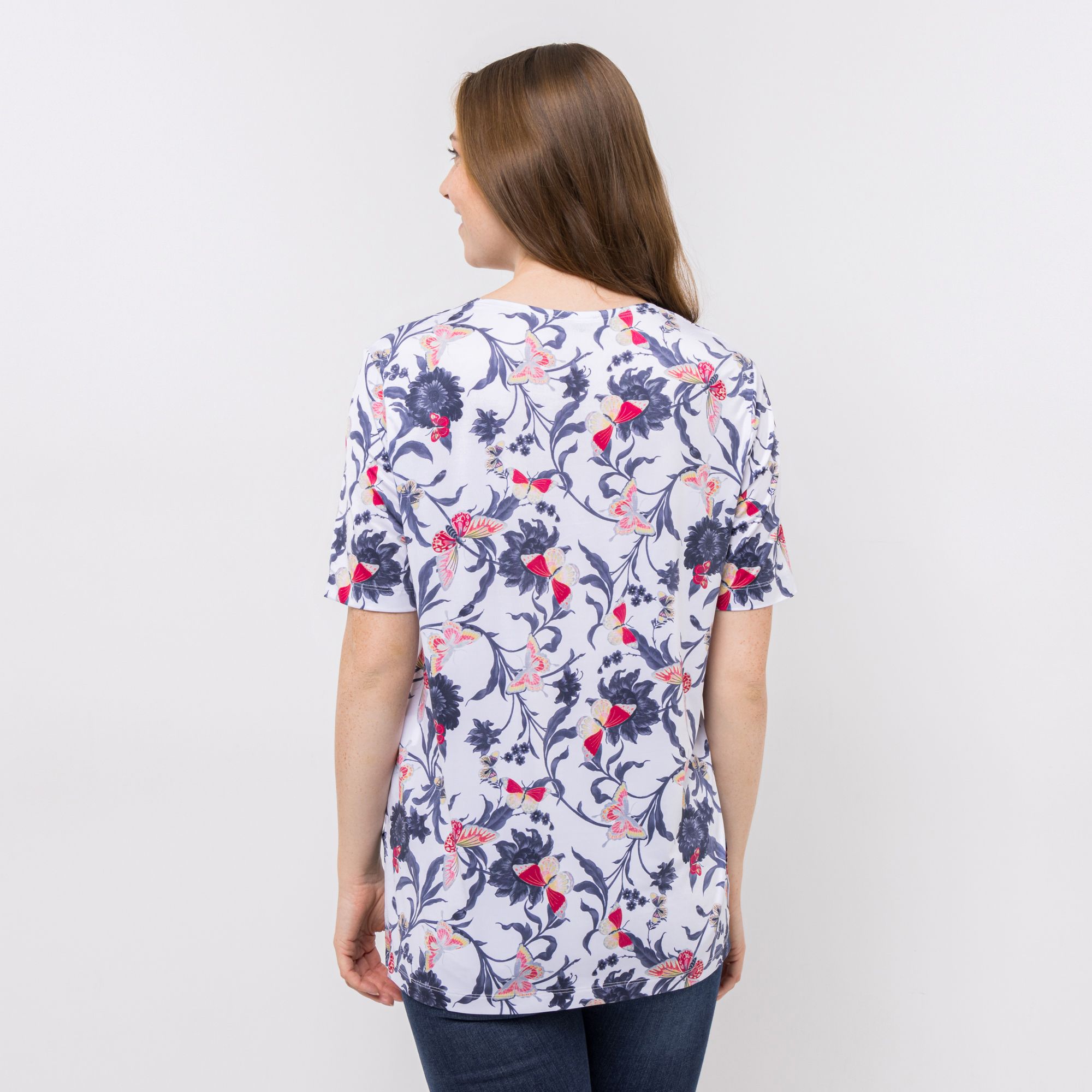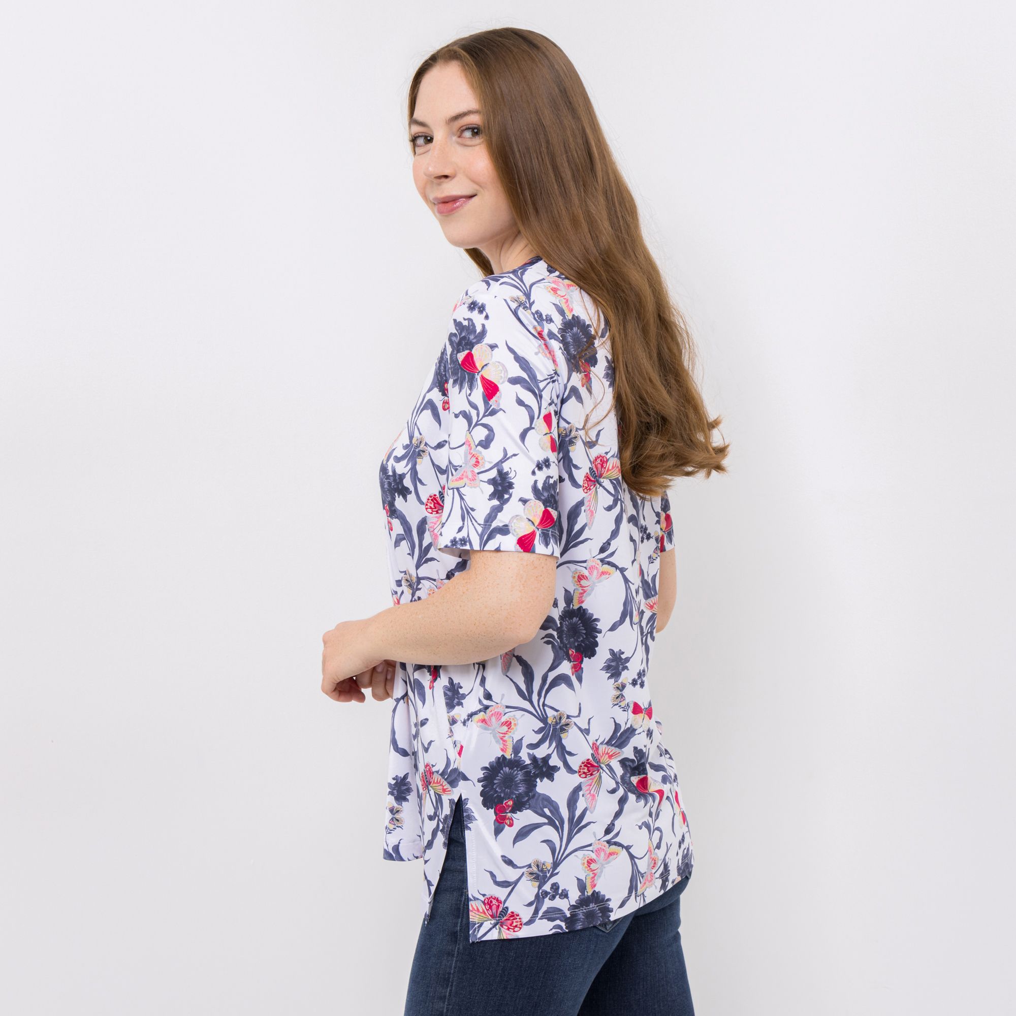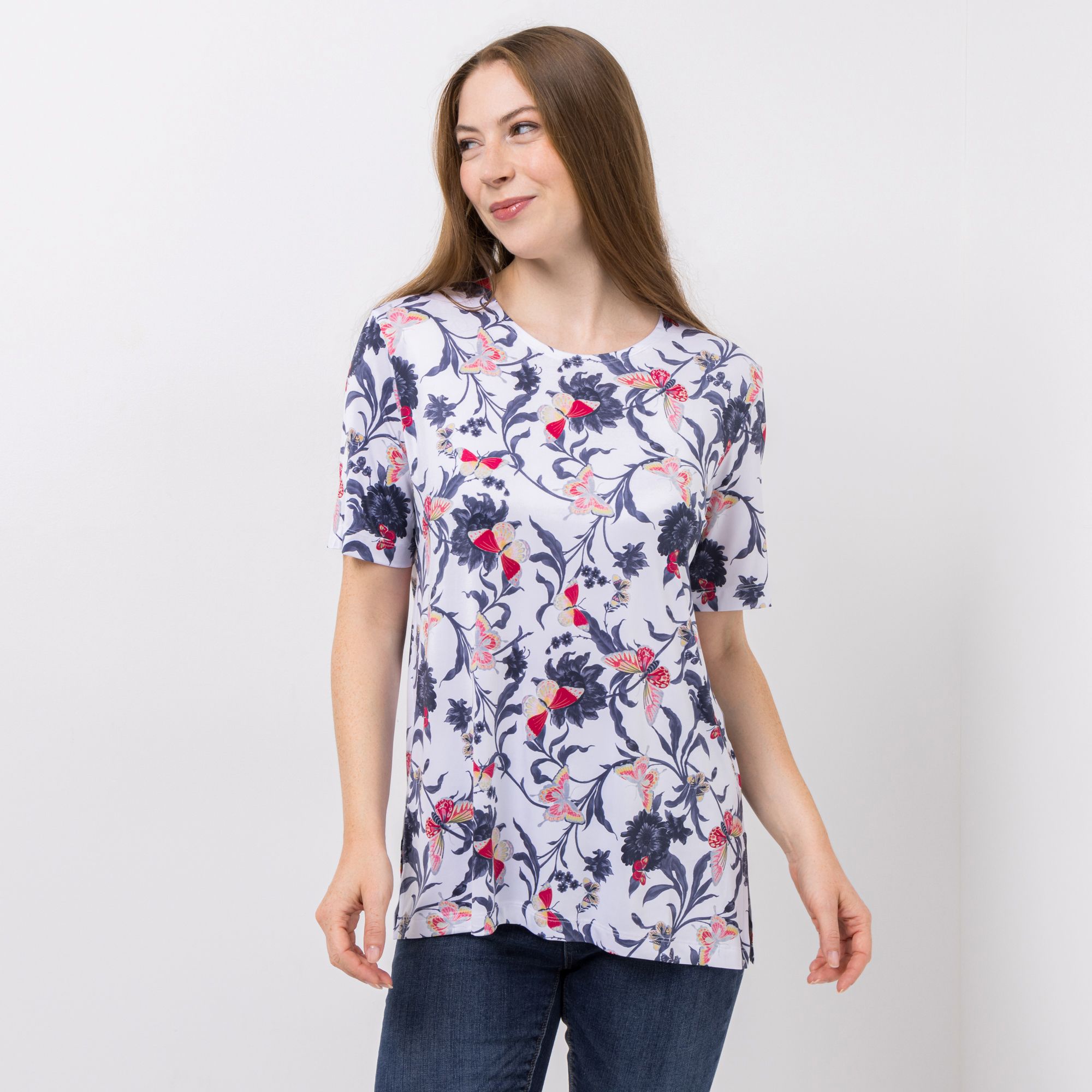 IN-PRINT Shirt 1/2-Arm Allover-Druck Rundhalsausschnitt Seitenschlitze