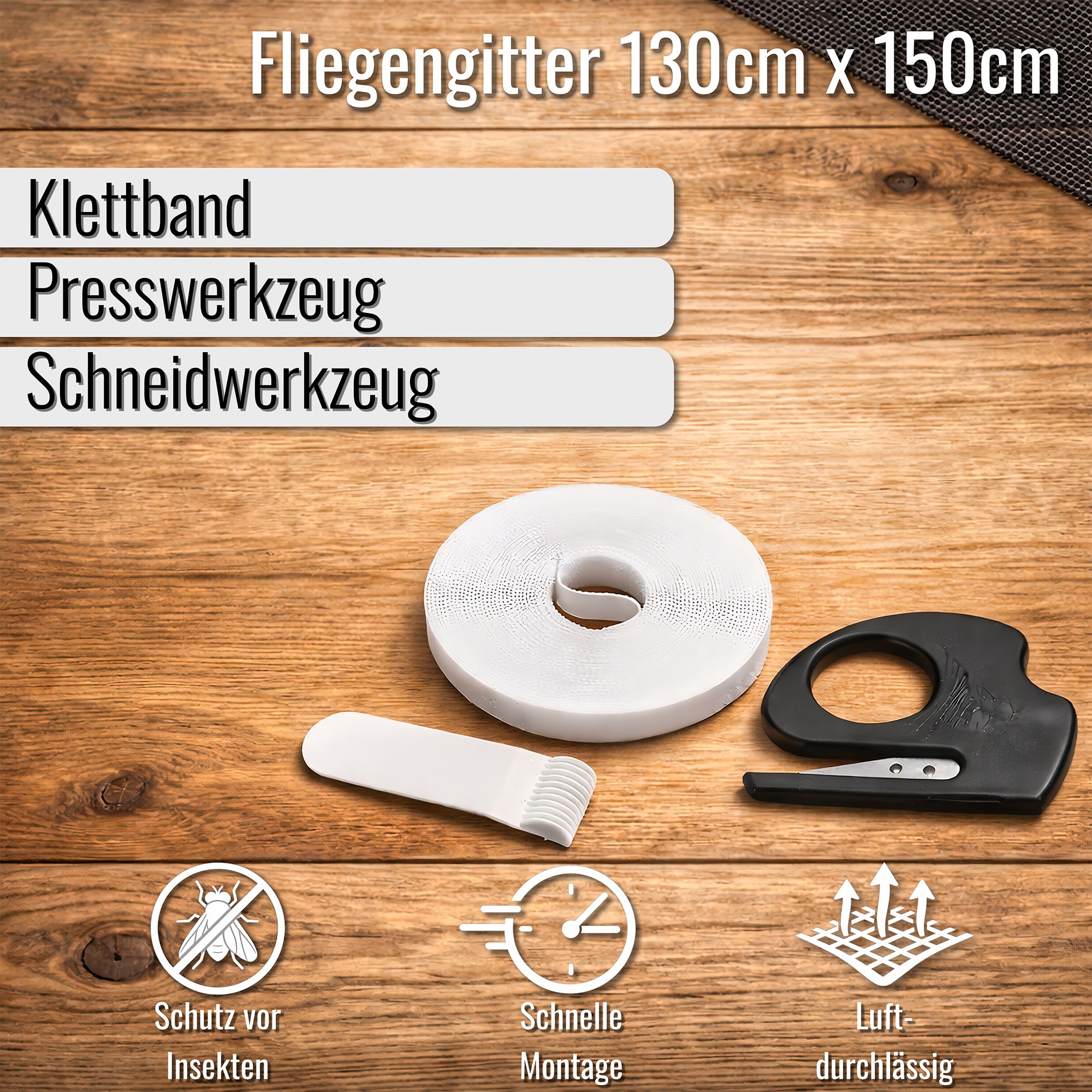 - Größe je Fenstergitter: 130 x 150 cm