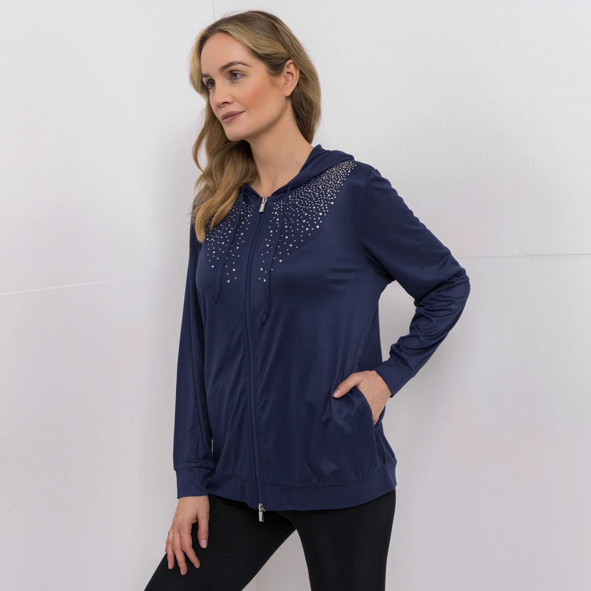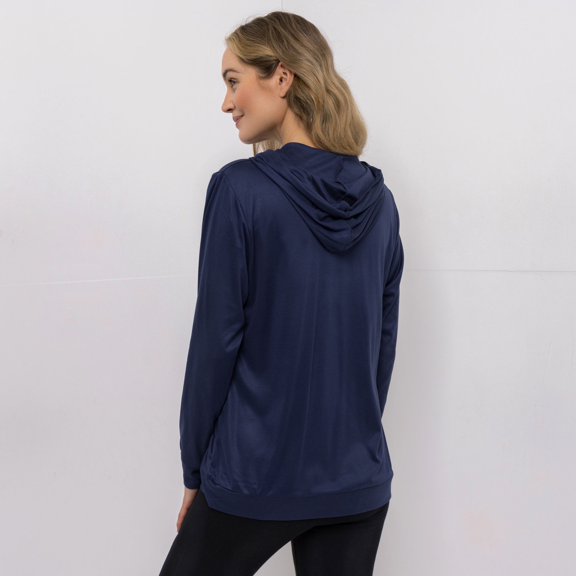 JERYMOOD HOMEWEAR Jacke, 1/1 Arm 2-Wege-Reißverschluss Strassdetails Kapuze mit Bindeband