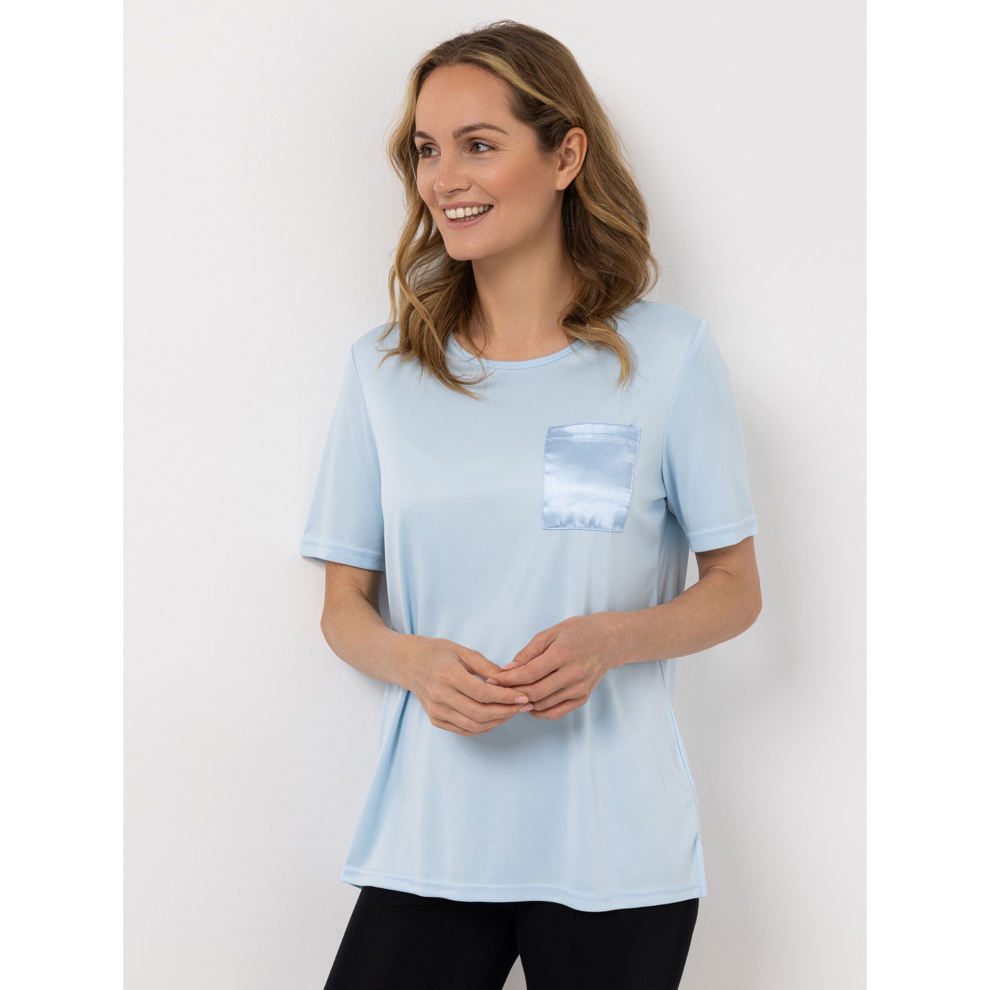 JERYMOOD HOMEWEAR Shirt, 1/2-Arm Mikrofaser Satin-Brusttasche Rundhalsausschnitt