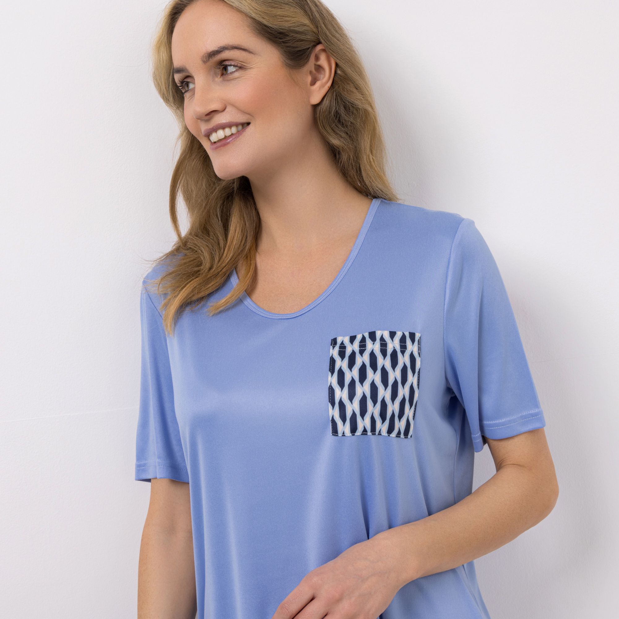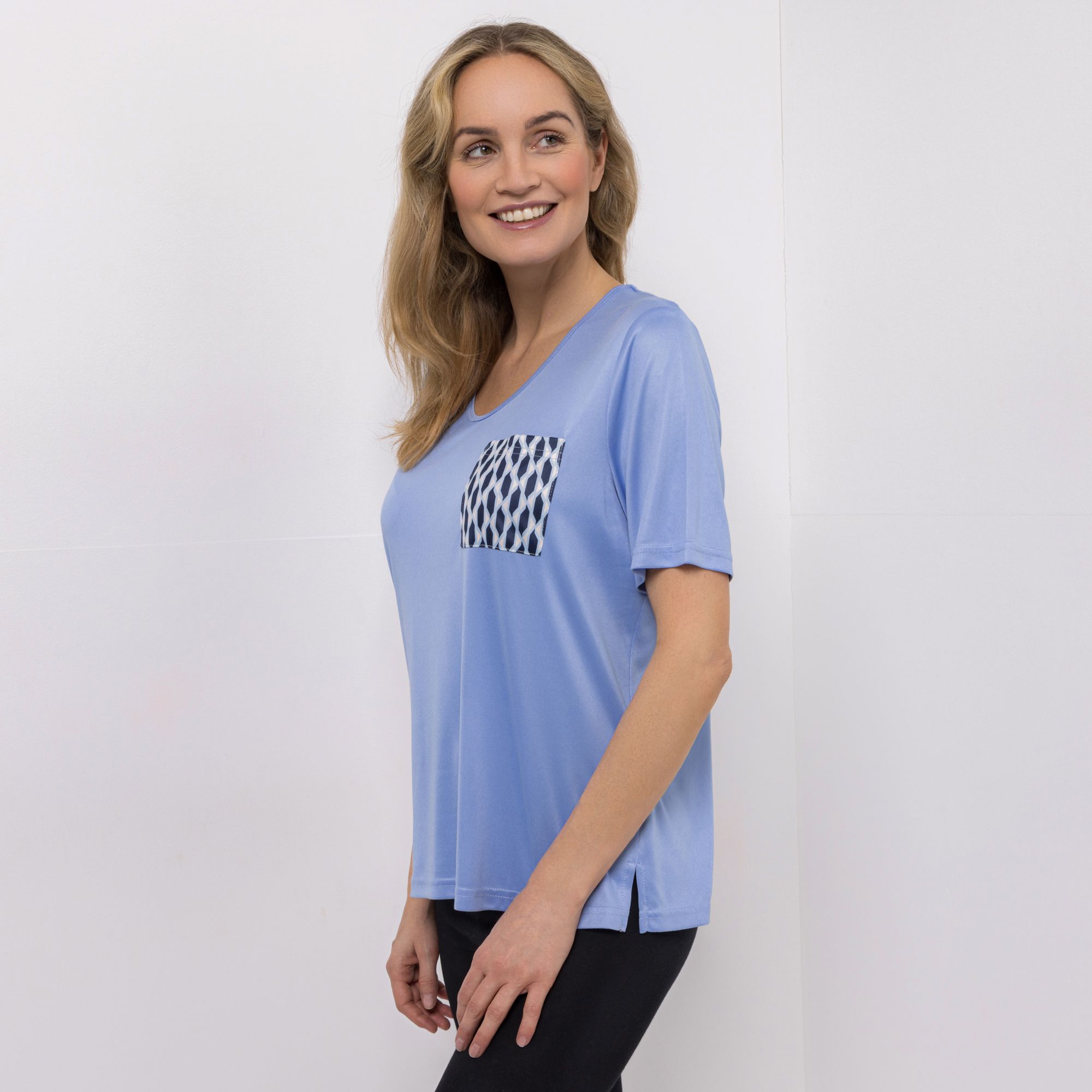 JERYMOOD HOMEWEAR Shirt, 1/2-Arm V-Ausschnitt Bedruckte Brusttasche Seitenschlitzen