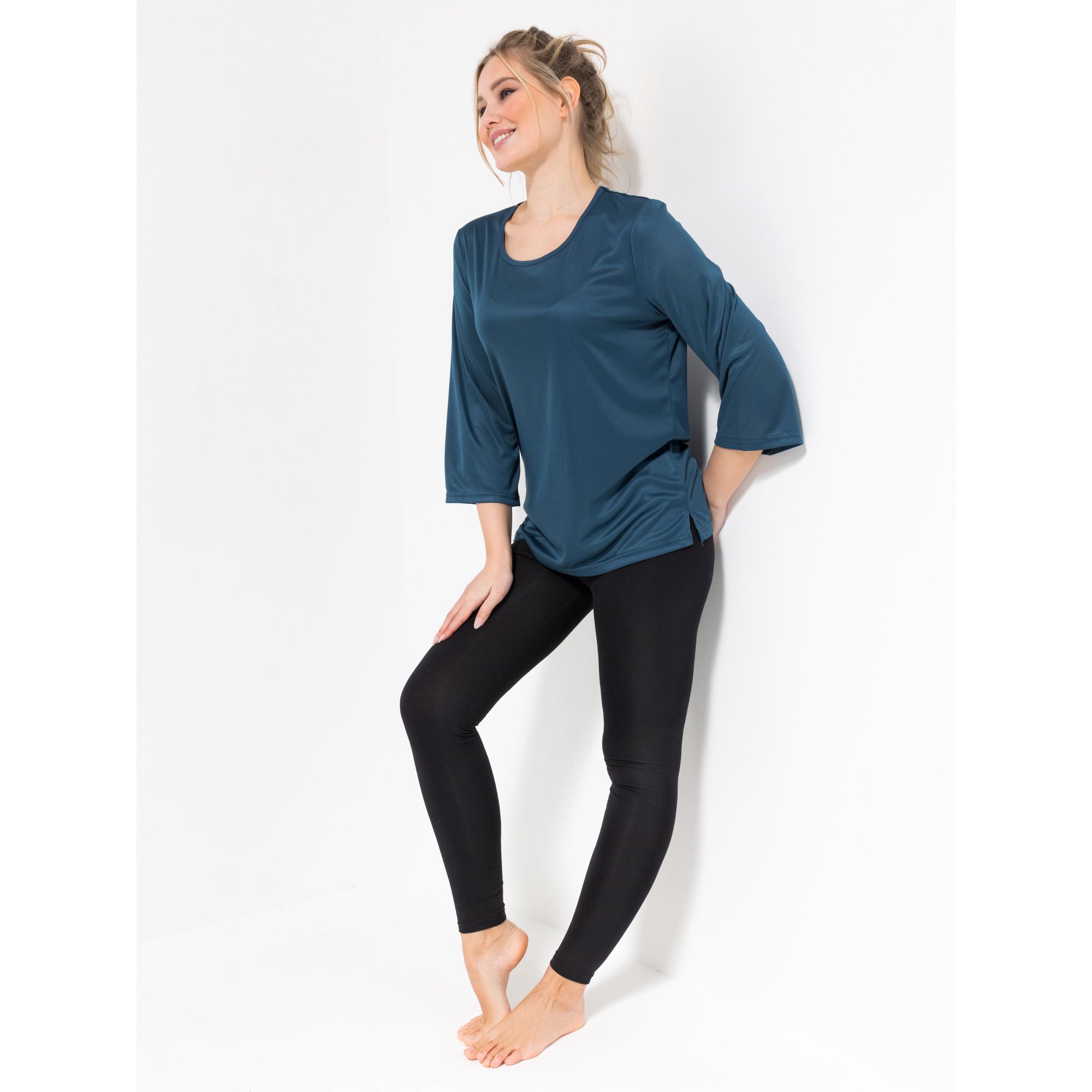 JERYMOOD HOMEWEAR Shirt, 7/8-Arm Rundhalsausschnitt Seitenschlitze uni