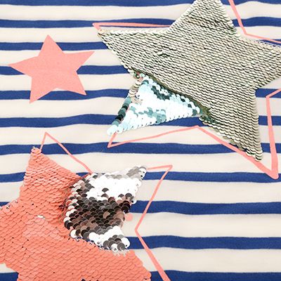 - Sternendruck mit Wendepailletten und Glitzer auf dem Vorderteil