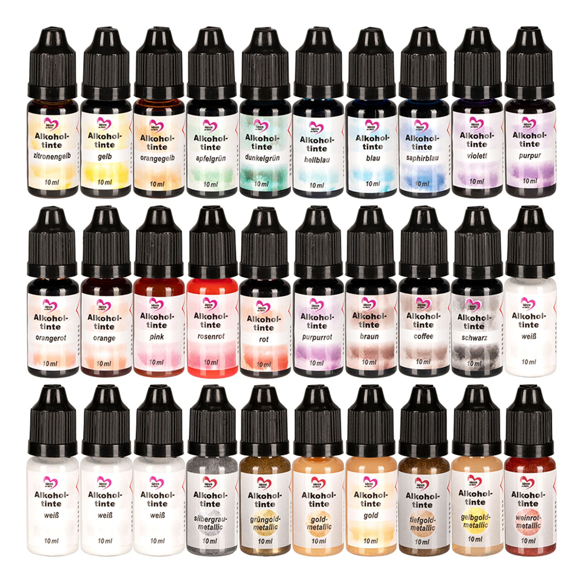 • 30 Flaschen Alkoholtinte, 27 Farben, je 10 ml