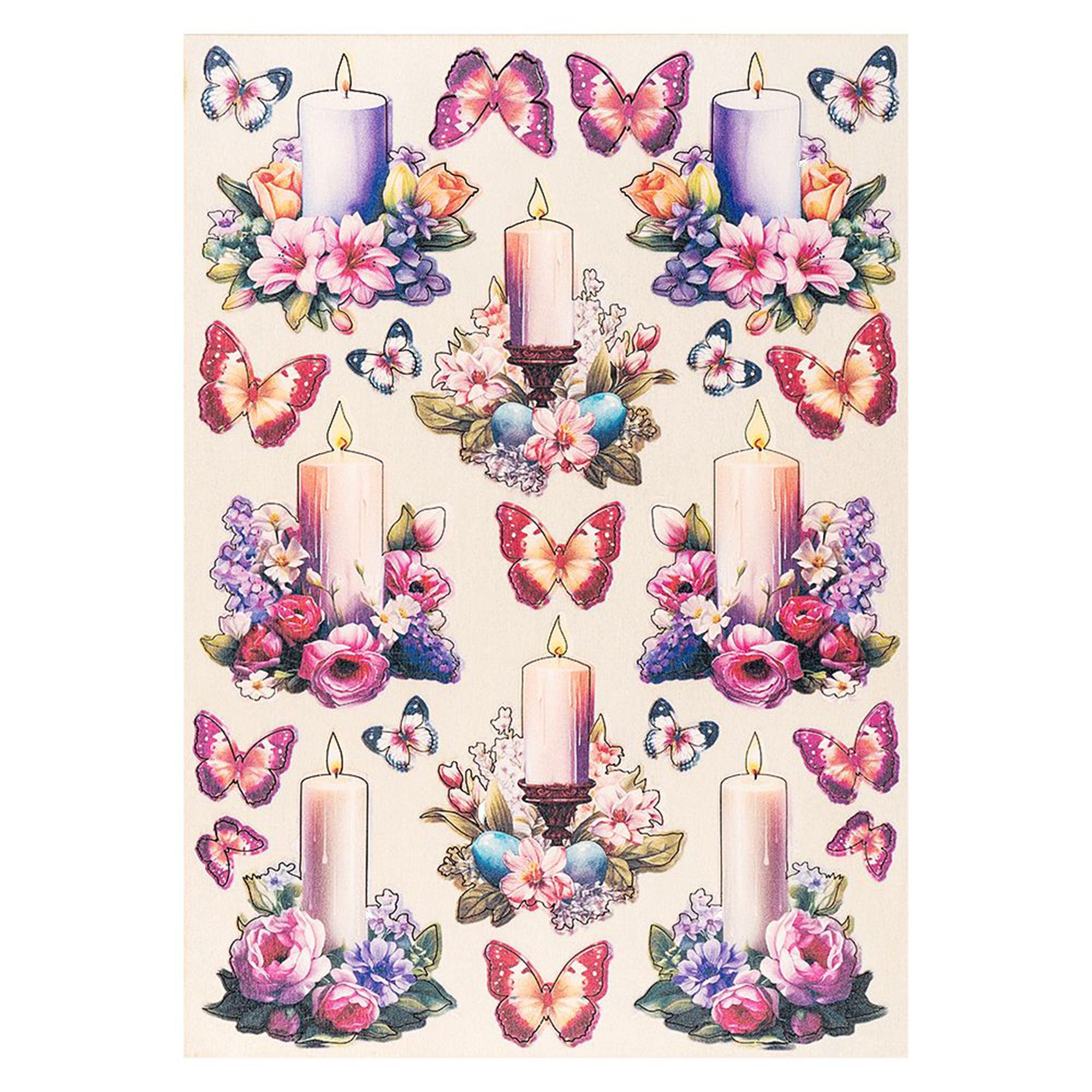 - Gratiszugabe: Motiv-Holz-Laserbogen, Schmetterlinge und Kerzen, DIN A4, ca. 2 mm stark, farbig bedruckt