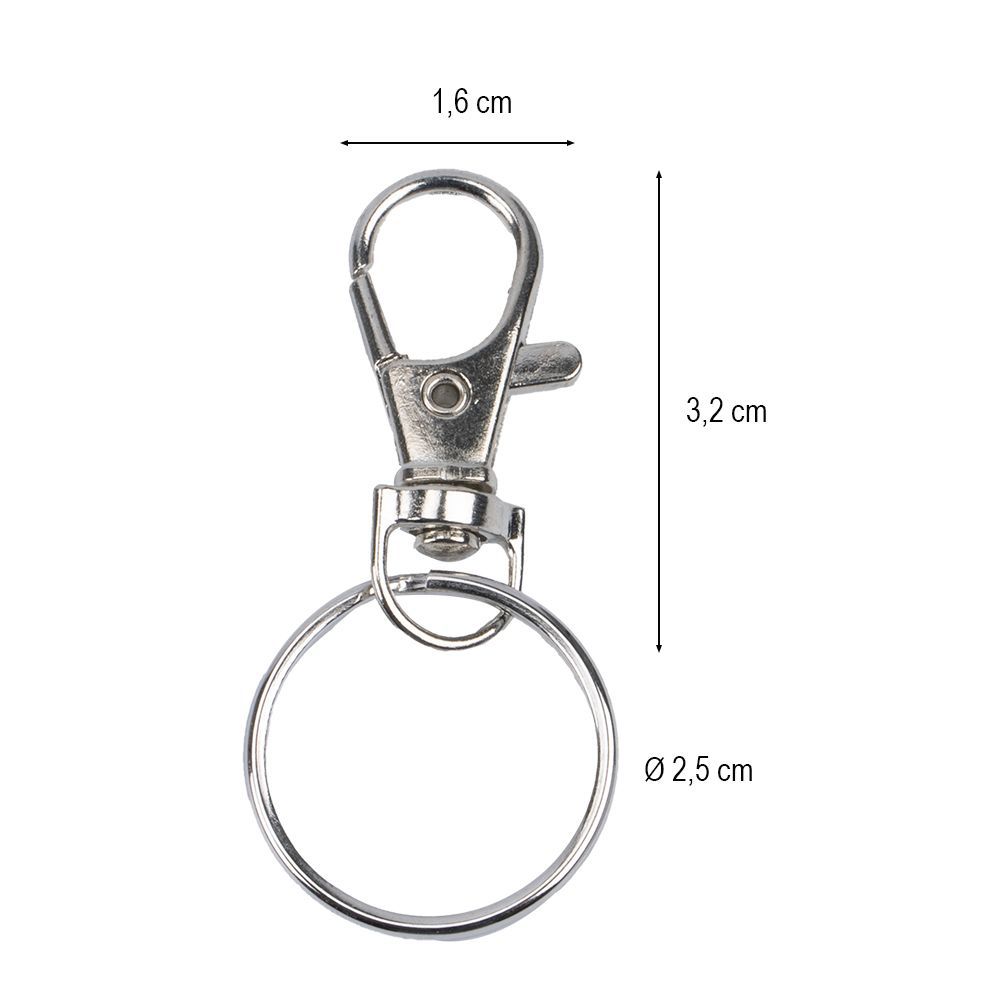 - Beutel mit 30 Karabinern, mit Drehgelenk 3,2 x 1,6 cm, silberfarben