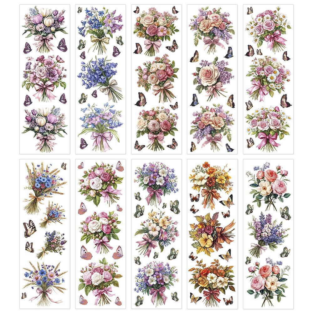 - 10 Bogen Premium-Transfers, Blumensträuße, 10 x 30 cm, farbig