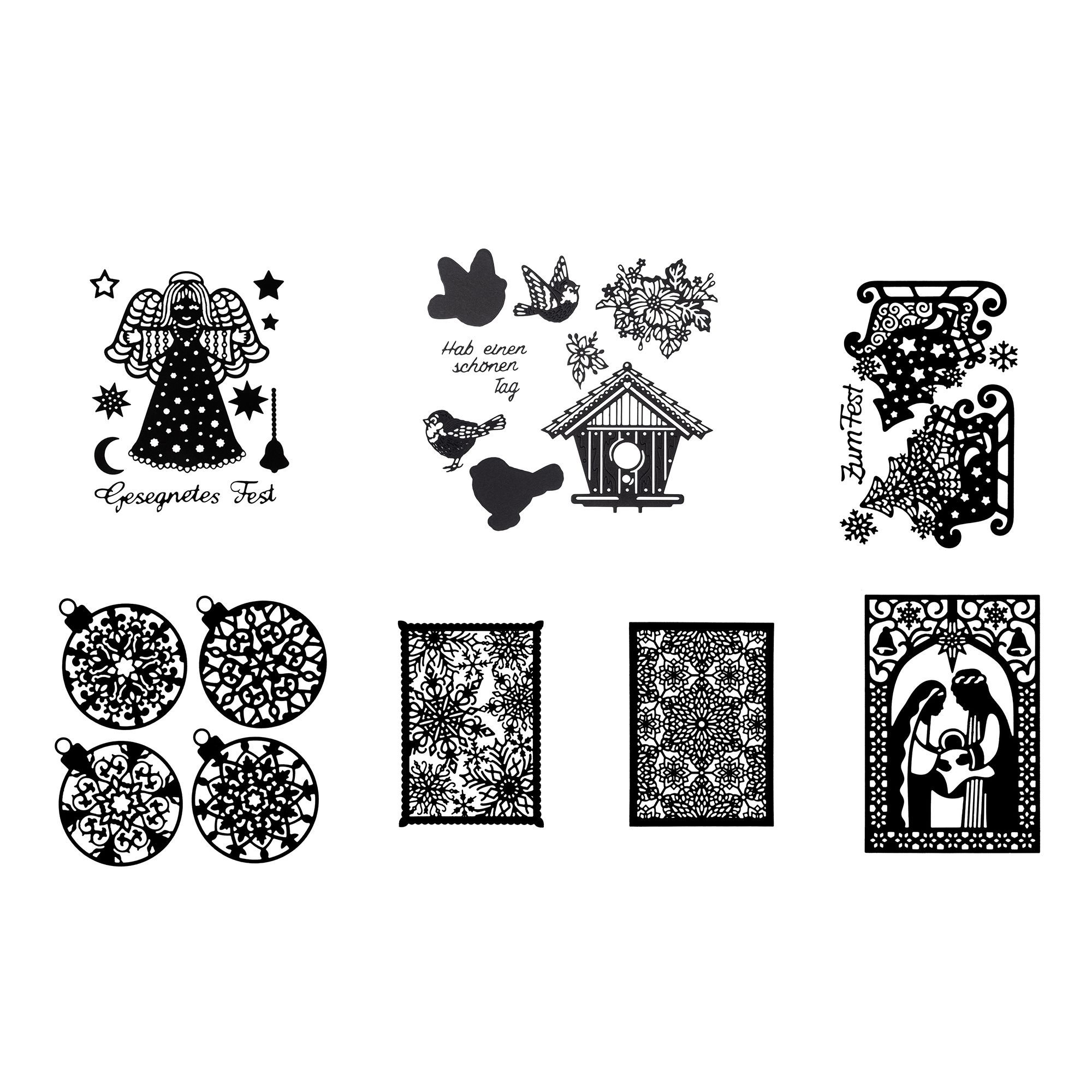 32 Stanzschablonen Wintermotive, Hintergründe, Schlitten, Eiskristalle, Engel und mehr