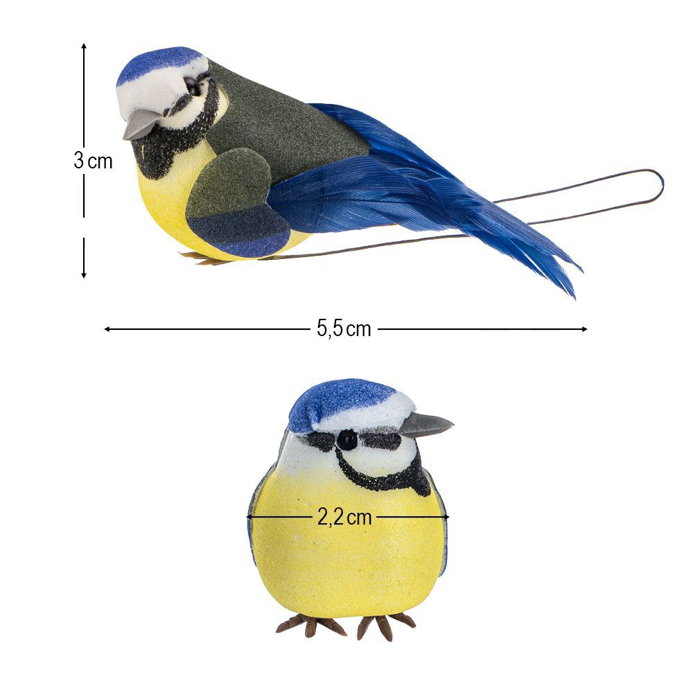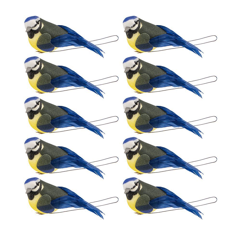 • 10 Deko-Federvögel, Blaumeisen, 2,2 x 5,5 x 3 cm