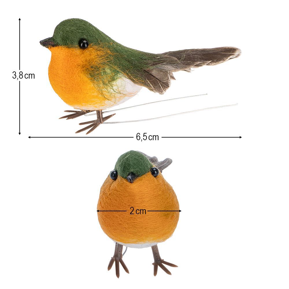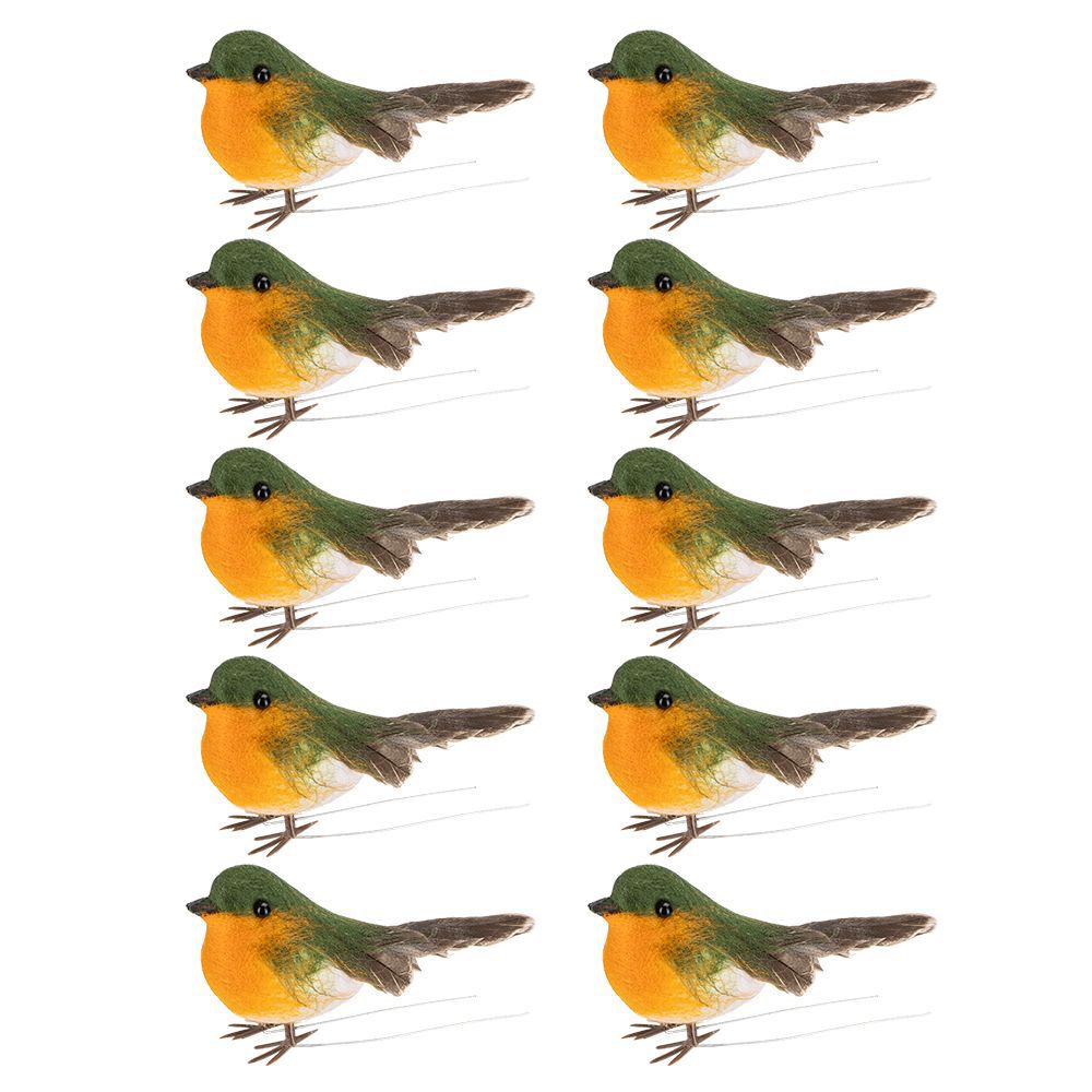 • 10 Deko-Federvögel, Rotkehlchen, 2 x 6,5 x 3,8 cm