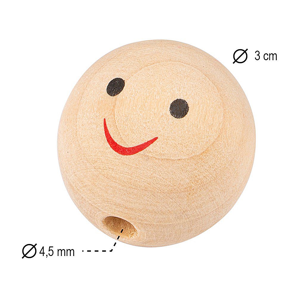 • 10 Holzköpfe, lächelnde Gesichter, Ø 3 cm, halbegebohrtes Loch an der Unterseite: Ø 4,5 mm