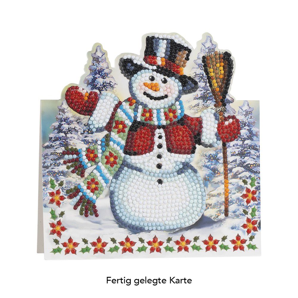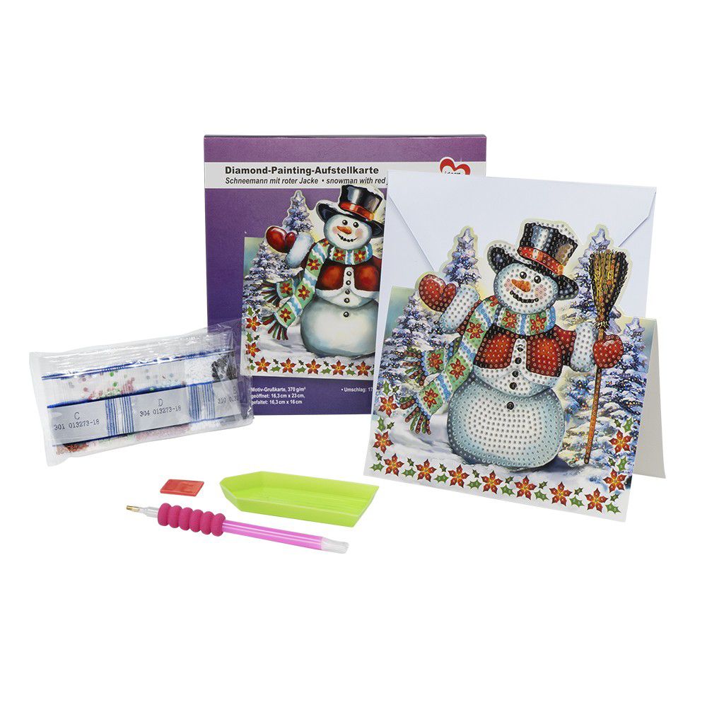 • 2 Diamond-Painting-Aufstellkarten, Schneemann mit roter Jacke, Hirsch, 16,3 x 16 cm, 370 g/m²