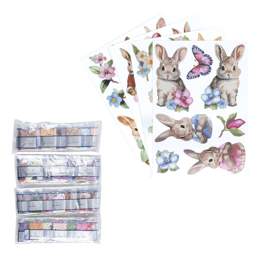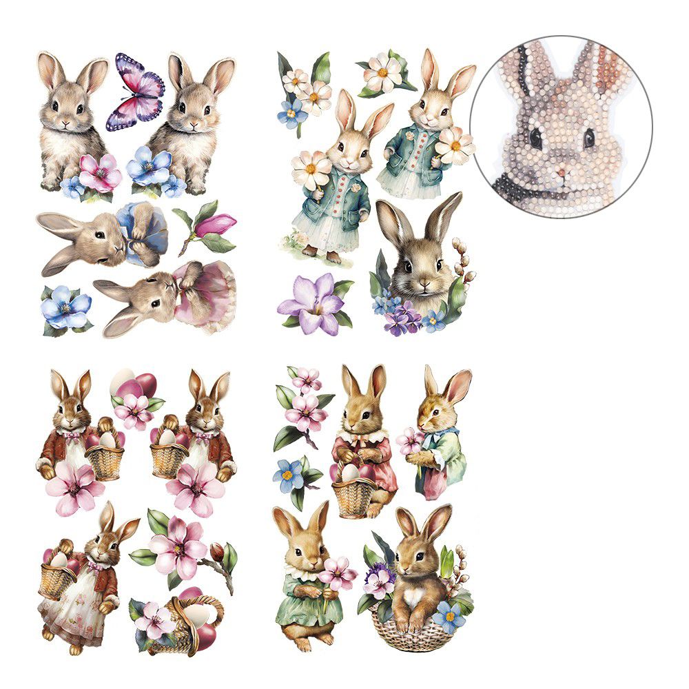 - 8 Bogen Diamond-Painting-Sticker, Rosen & Osterhasen, DIN A4, verschiedene Designs und Größen