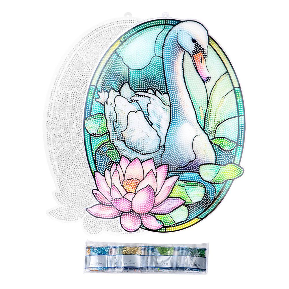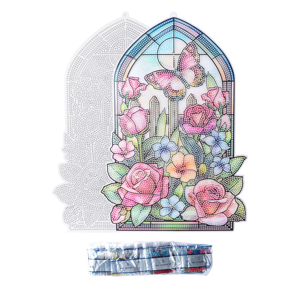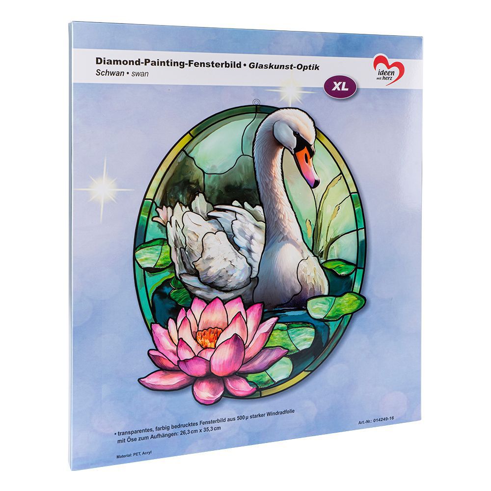 3 Diamond-Painting-Fensterbilder, Glaskunst-Optik, XL, transparente, farbig bedruckte Fensterbilder, verschiedene Größen und Designs (Schwan, Frühlingsblumen mit Schmetterling, Rosen mit Schmetterling), 500µ, Vorlage zum Platzieren der Steine