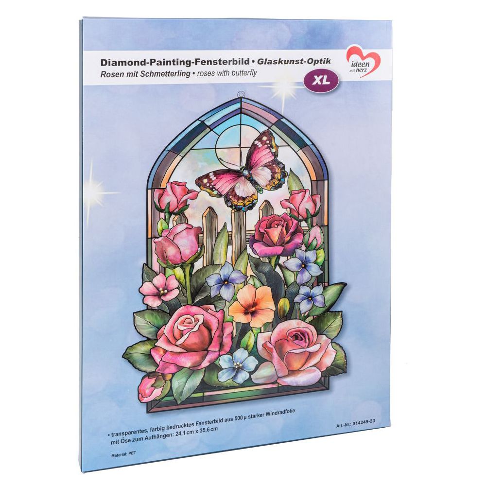 Das Set von KARIN JITTENMEIER umfasst Diamond-Painting-Fensterbilder im XL-Format, die sich mit den zum Set gehörenden Schmucksteinen farbenfroh verzieren lassen.