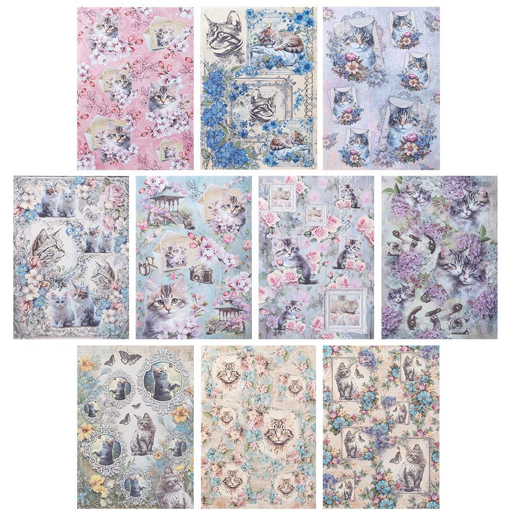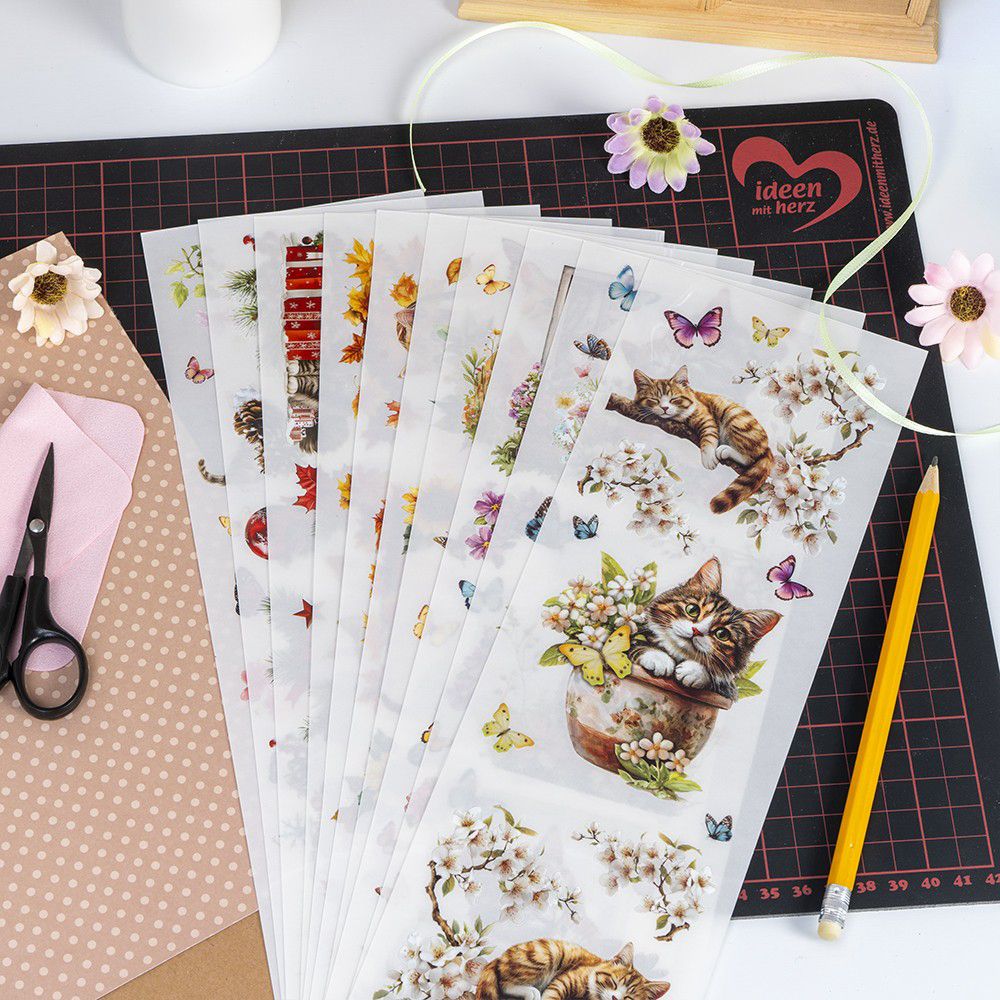 - 10 Bogen Premium-Transfers, Katzen, 10 cm x 30 cm, verschiedene Designs, farbig
