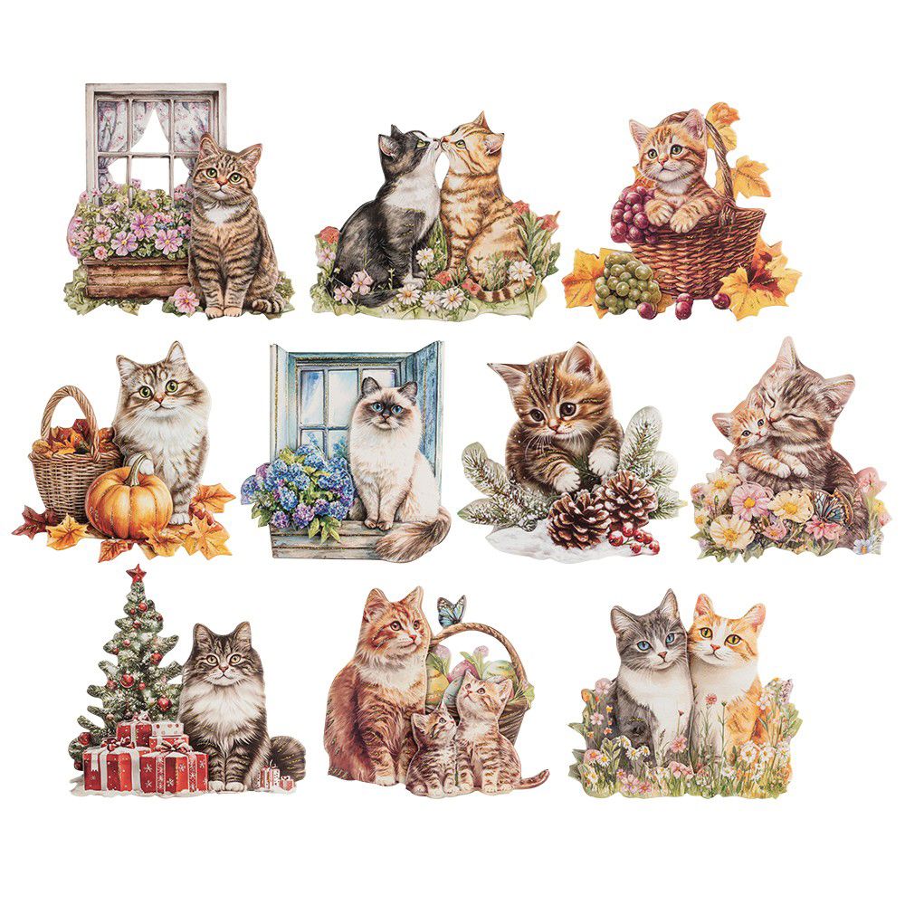 - 20 3D-Motive, Katzen, verschiedene Designs und Größen, mit Glimmerlack-Veredelung in Gold