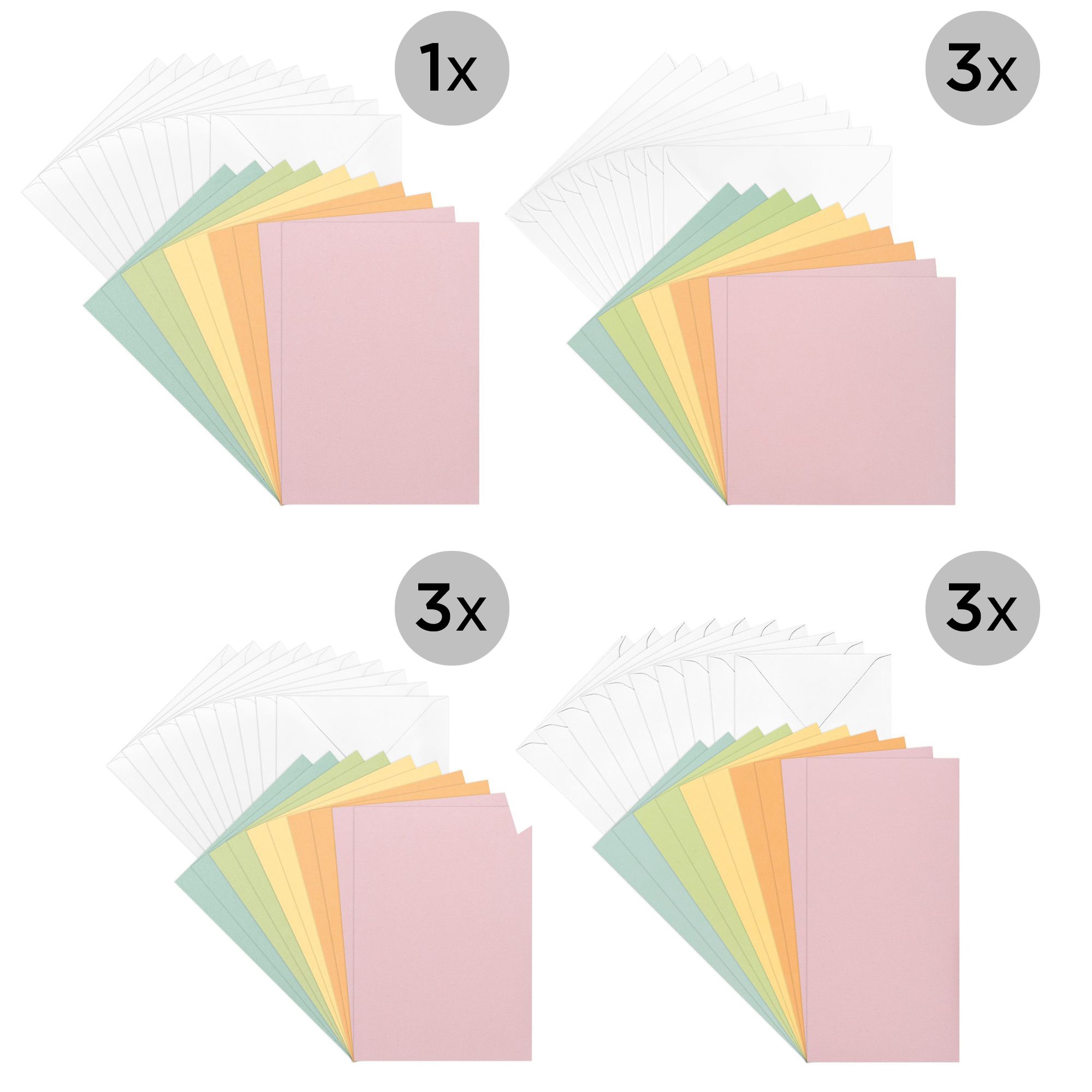 100 Perlmutt-Grußkarten mit Glitzer-Effekte und Marmor-Schimmer, 4 verschiedene Größen (C6/B6/16 x 16 cm/Din lang), 5 sommerlich-frische Farben