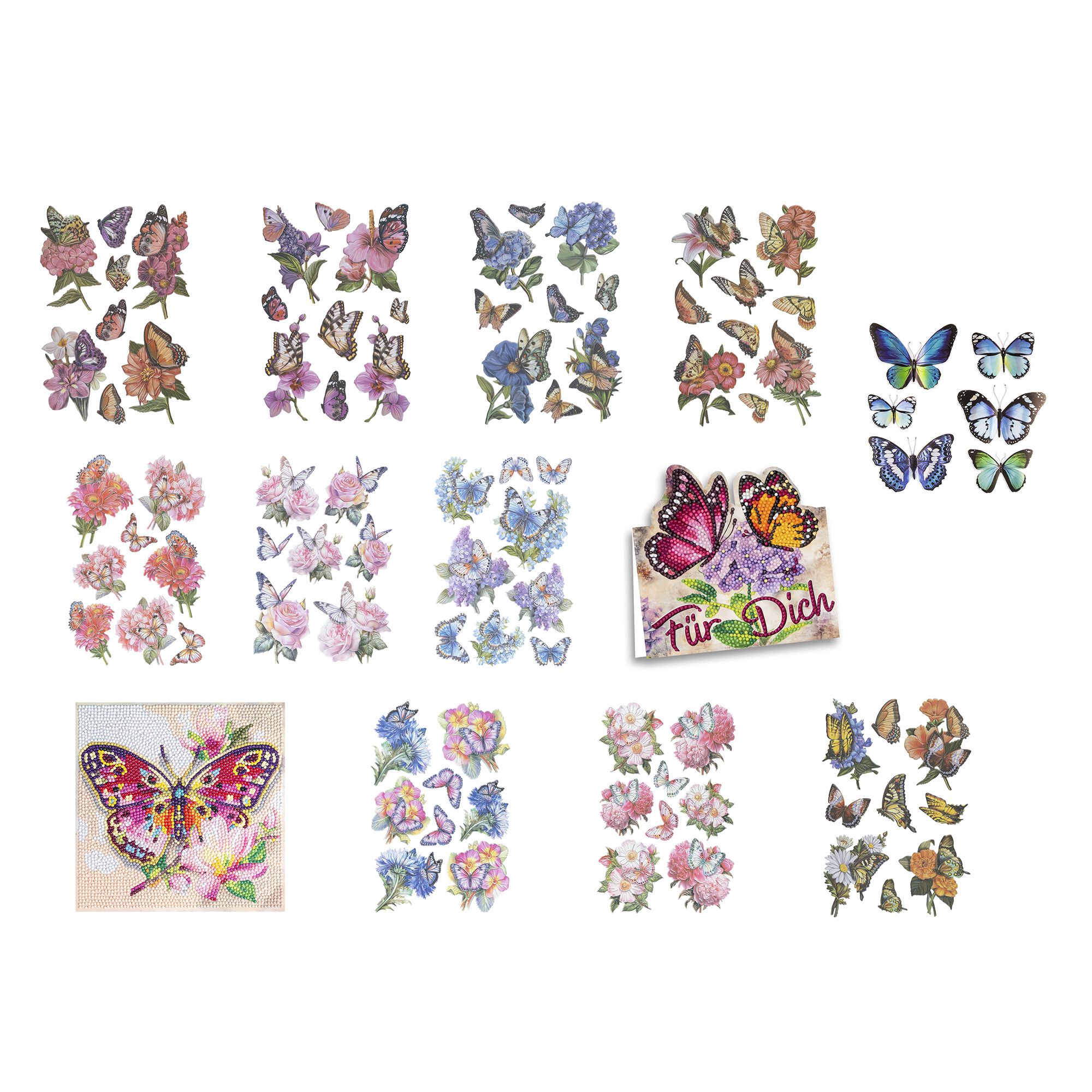 Glamouröse Sommermomente: Das KARIN JITTENMEIER Kreativ-Set mit Reliefstickerbogen und Diamond Painting setzt auf Schmetterlingsmotive.