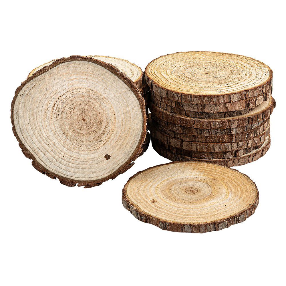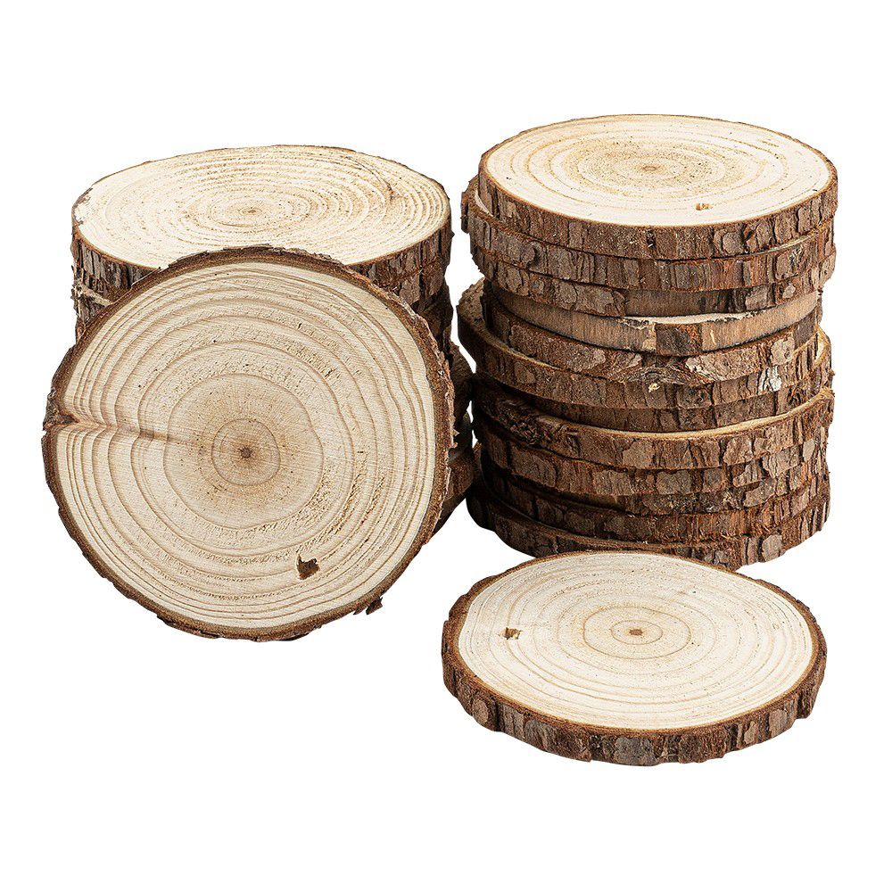 - 20 Baumscheiben, Ø 9 cm x 10 cm, 0,6 cm stark, mit Rinde