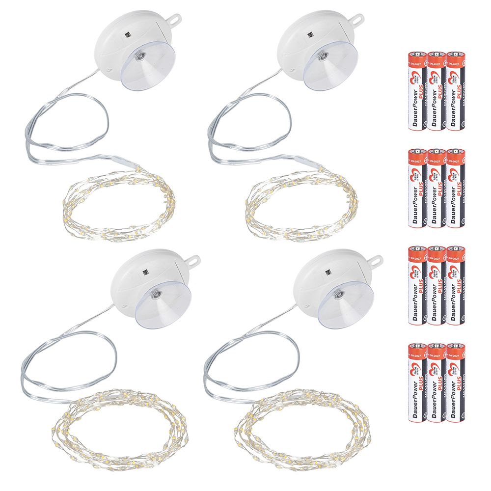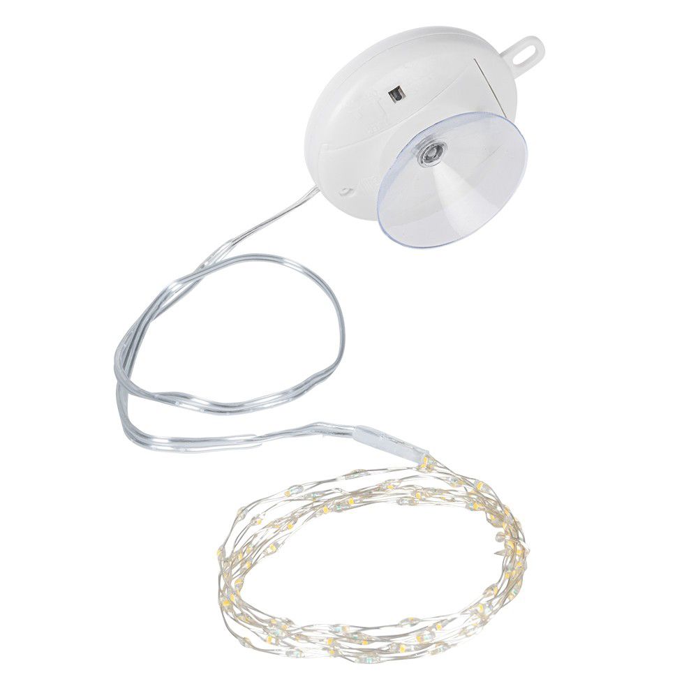 2 LED-Drahtlichterketten, zum Aufhängen, 50 LEDs, warmweiß, silberner Draht, Kabel transparent, weißes Batteriefach mit Saugnapf und Haken, mit Timer-Funktion, Gesamtlänge: 1,35 m, Abstand zwischen den LEDs: 2 cm, Kabellänge vom Batteriefach zum ersten LED: 35 cm