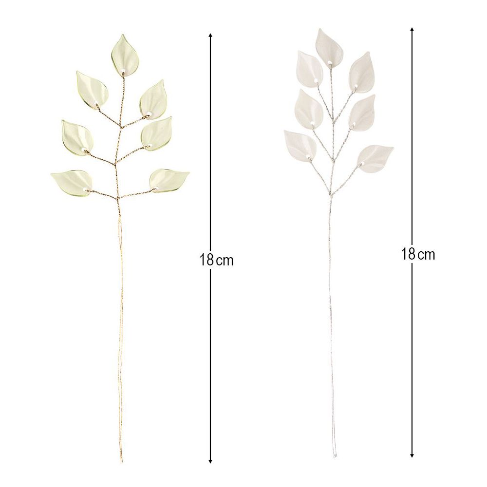 - 10 Traum-Zweige Aurelia, mit Acryl-Blättern, goldener Draht, hellgrüne Blätter