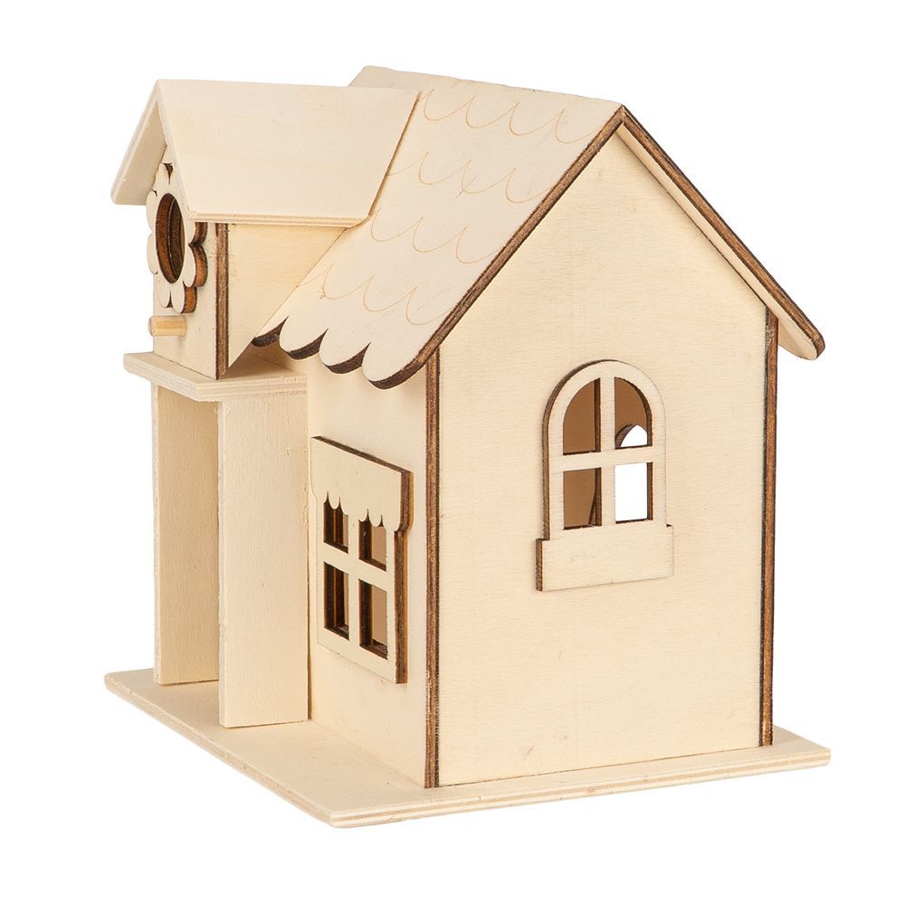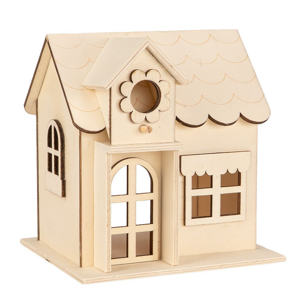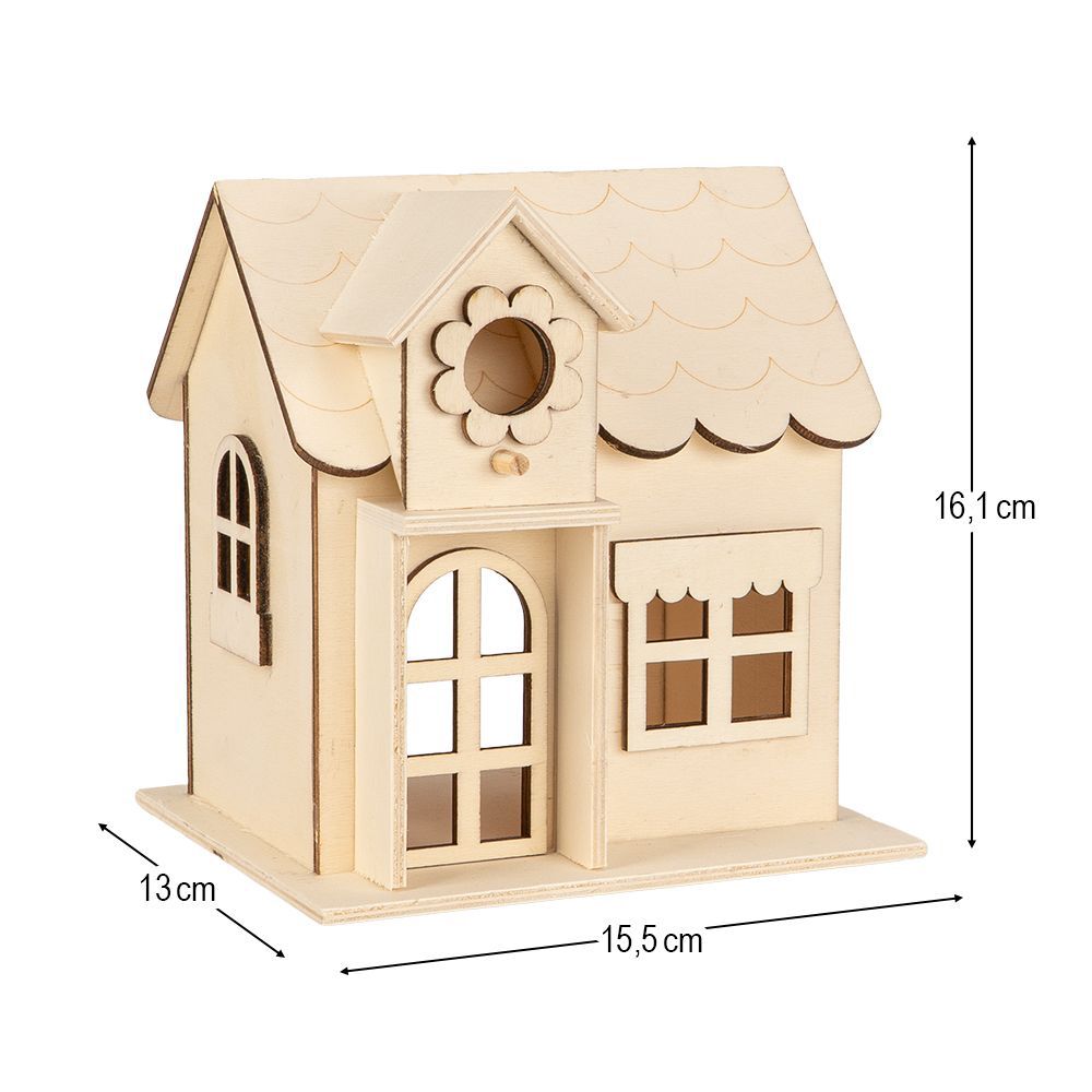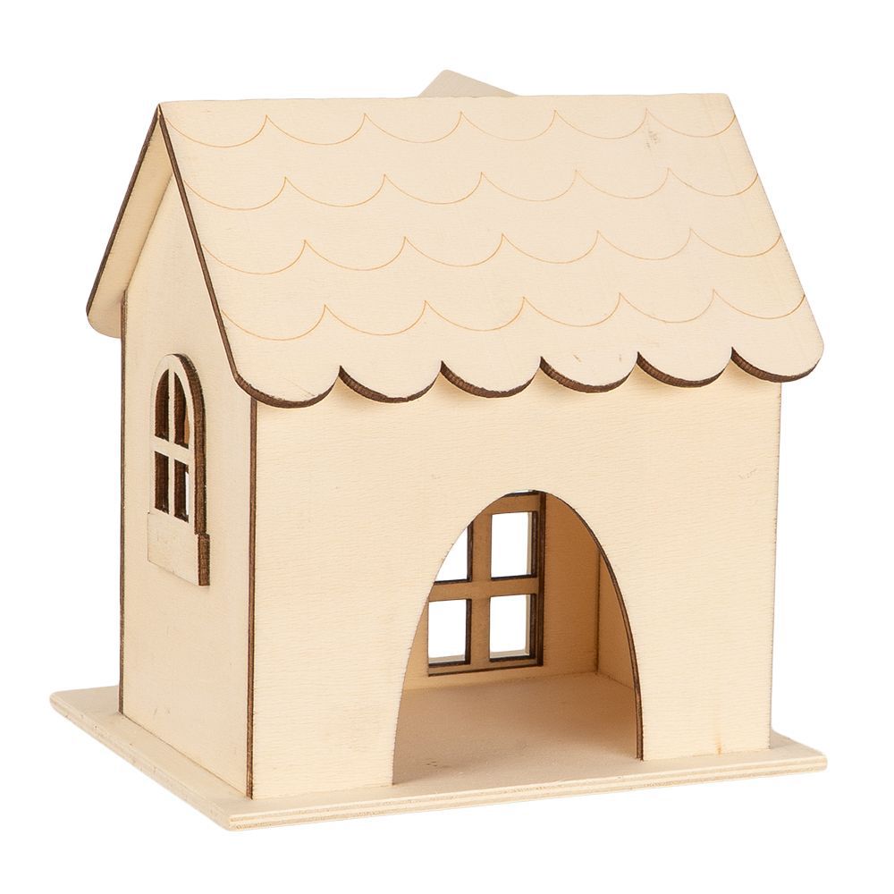 • 3 Giebelhäuser aus Holz (15,5 x 13 x 16,1 cm), mit Öffnung auf der Rückseite