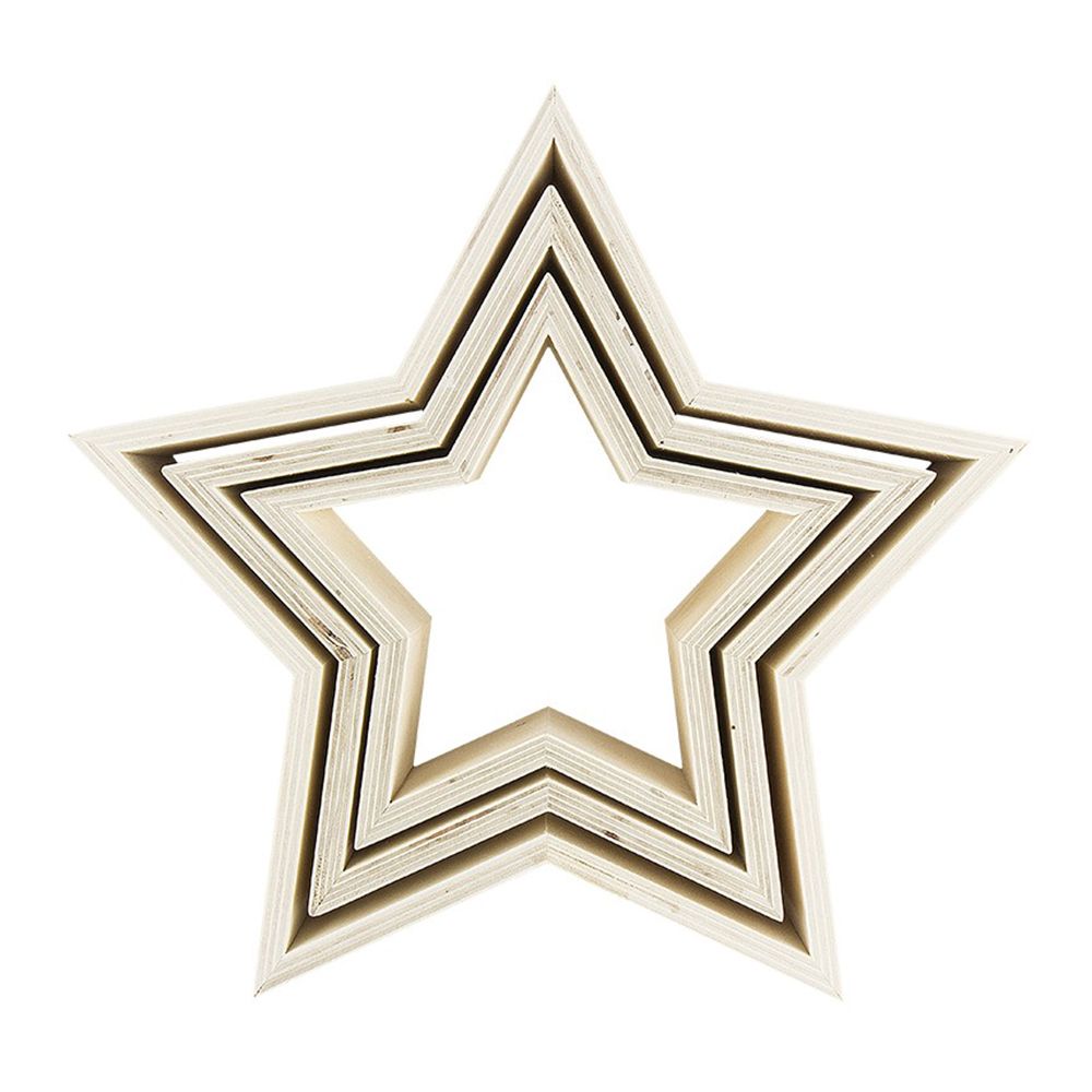 • 9 Holzrahmen in Sternenform, 3 verschiedene Größen (19,5 x 18,5 x 7cm / 24,5 x 23,5 x 7 cm / 30 x 28,5 x 7 cm)