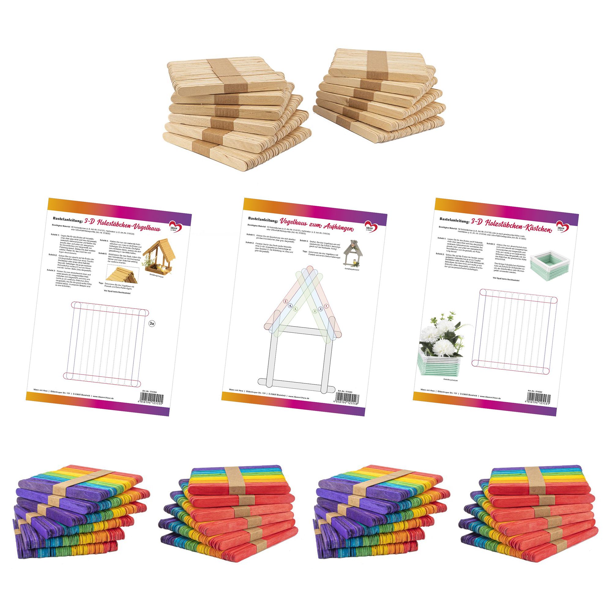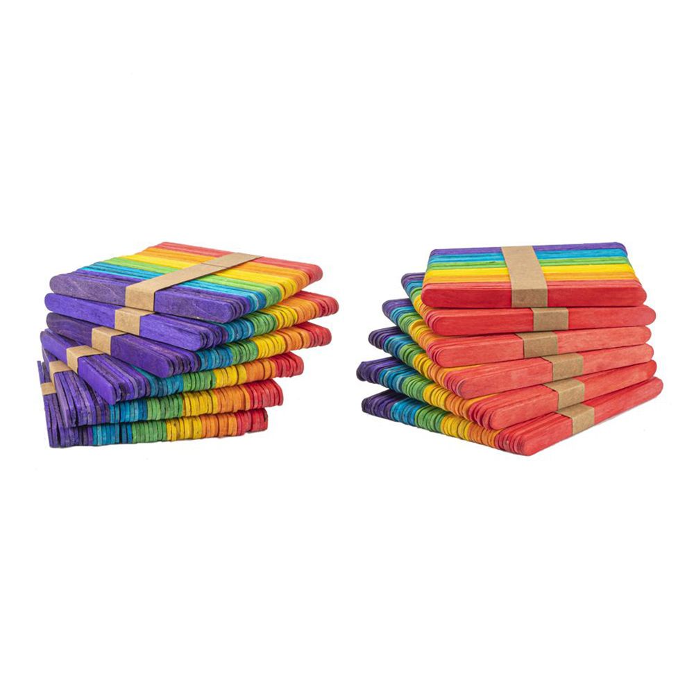 - 24 Packungen mit je 50 Holzstäbchen, 6 verschiedene Farben (violett, blau, grün, gelb, orange, rot), ca. 1.200 Stück, ca. 11,4 cm lang, ca. 1 cm breit