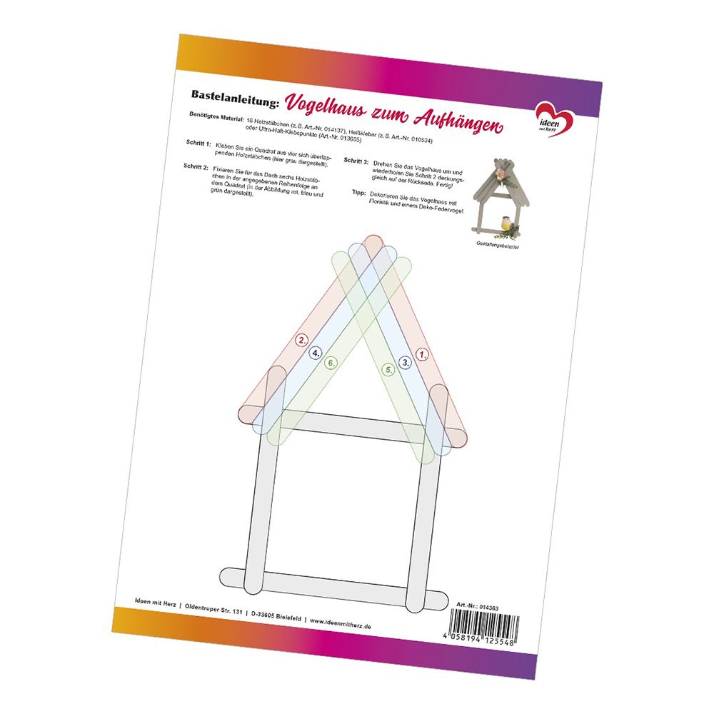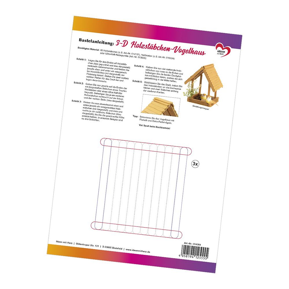 - 1 Vorlage/Bastelanleitung für ein 3-D Holzstäbchen-Vogelhaus, DIN A4