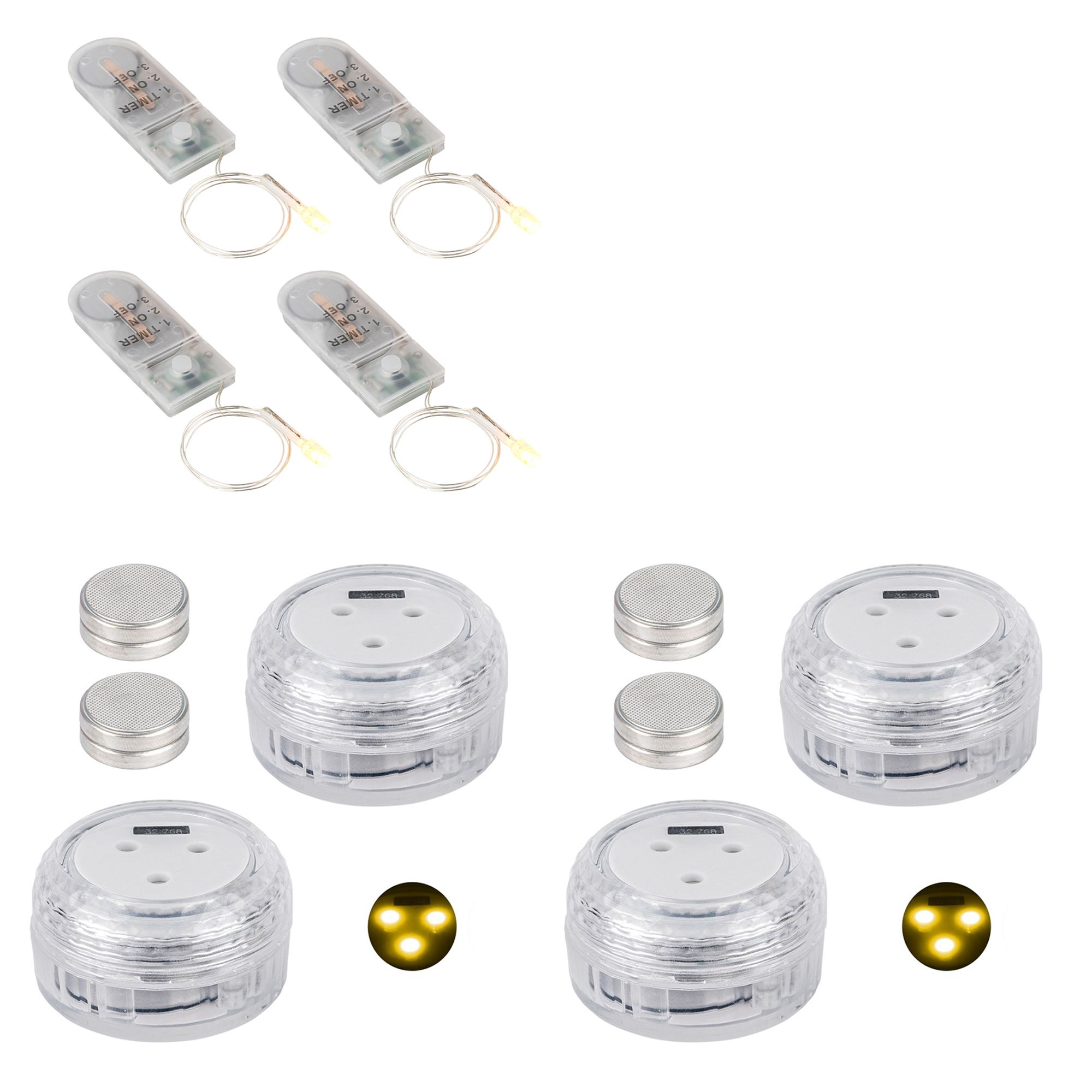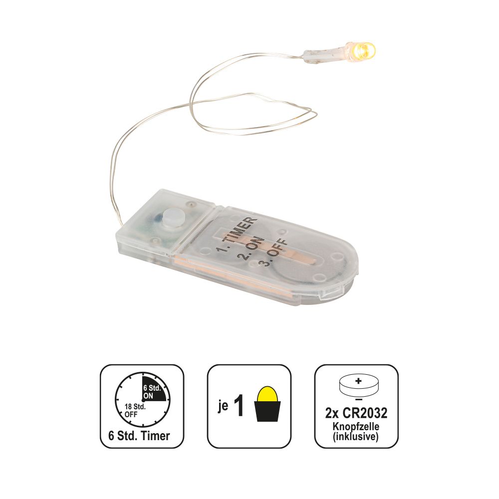 • 4 LED-Drahtlichter, mit Flackereffekt, je 1 LED in Warmweiß, mit Timer, batteriebetrieben