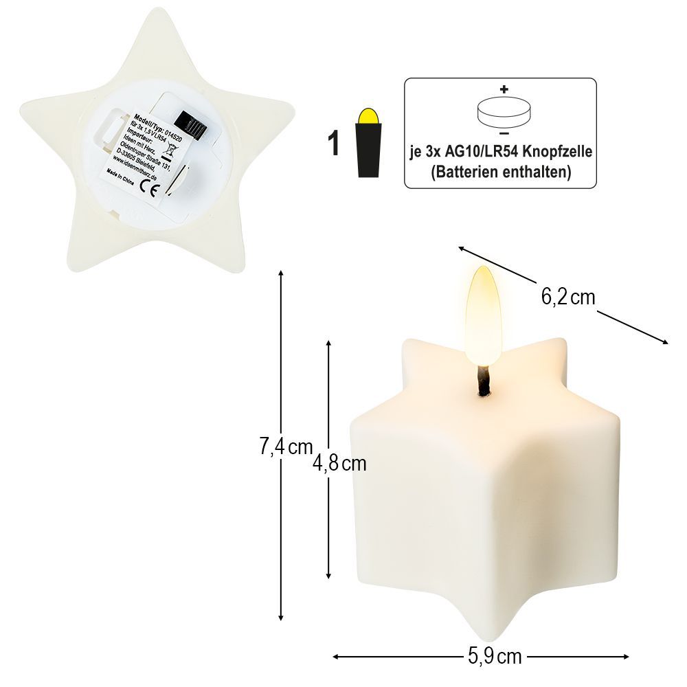 • 8 LED-Kerzen, Stern, creme, 6,2 x 5,9 x 7,4 cm, LED in Warmweiß, Flacker-Effekt