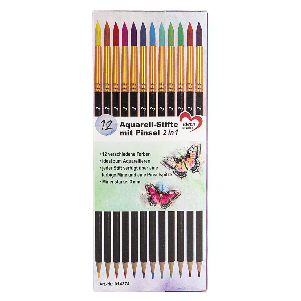 • 12 Aquarell-Stifte mit Pinsel 2 in 1, verschiedene Farben