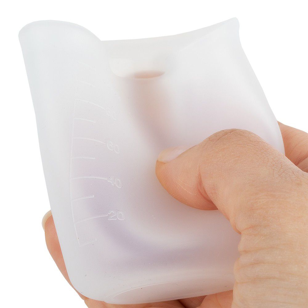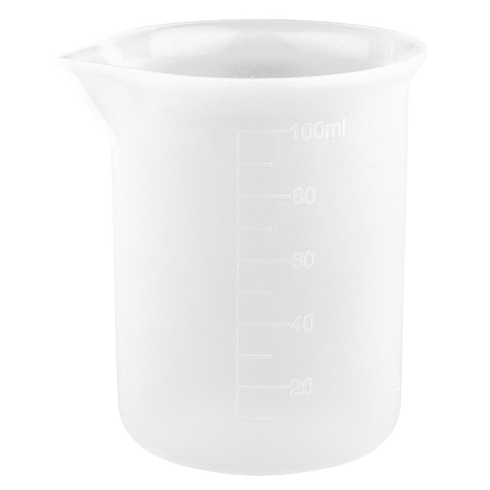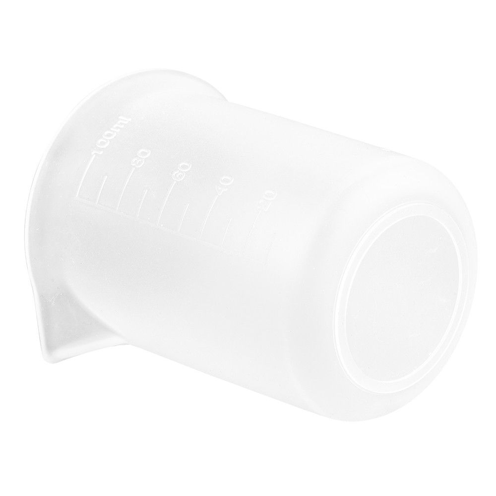 • 6 Silikon-Messbecher, antihaft, je 100 ml Fassungsvermögen, weiß transluzent, je eine eingeprägte Skala in 10-ml-Schritten