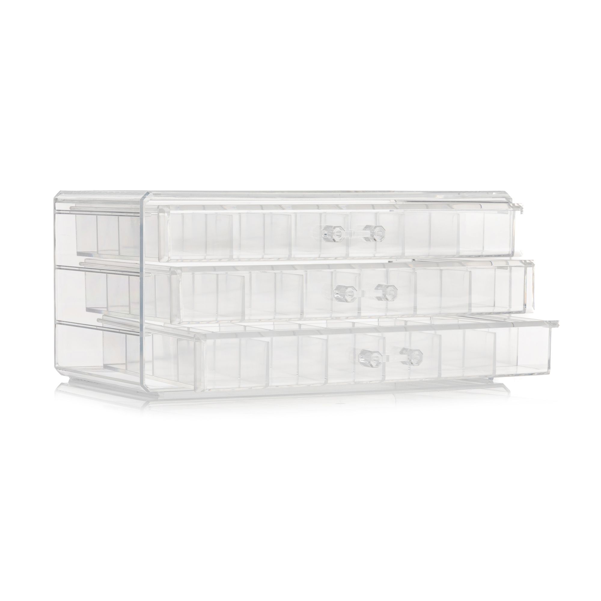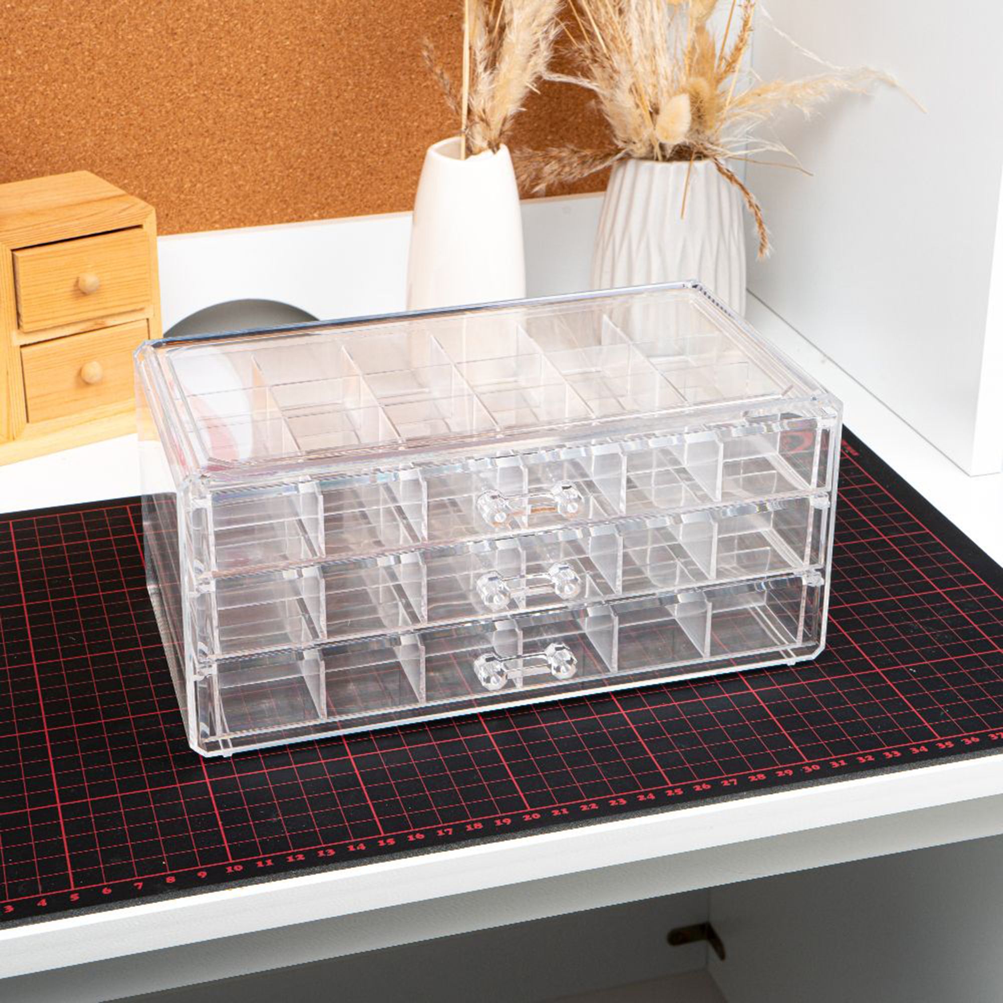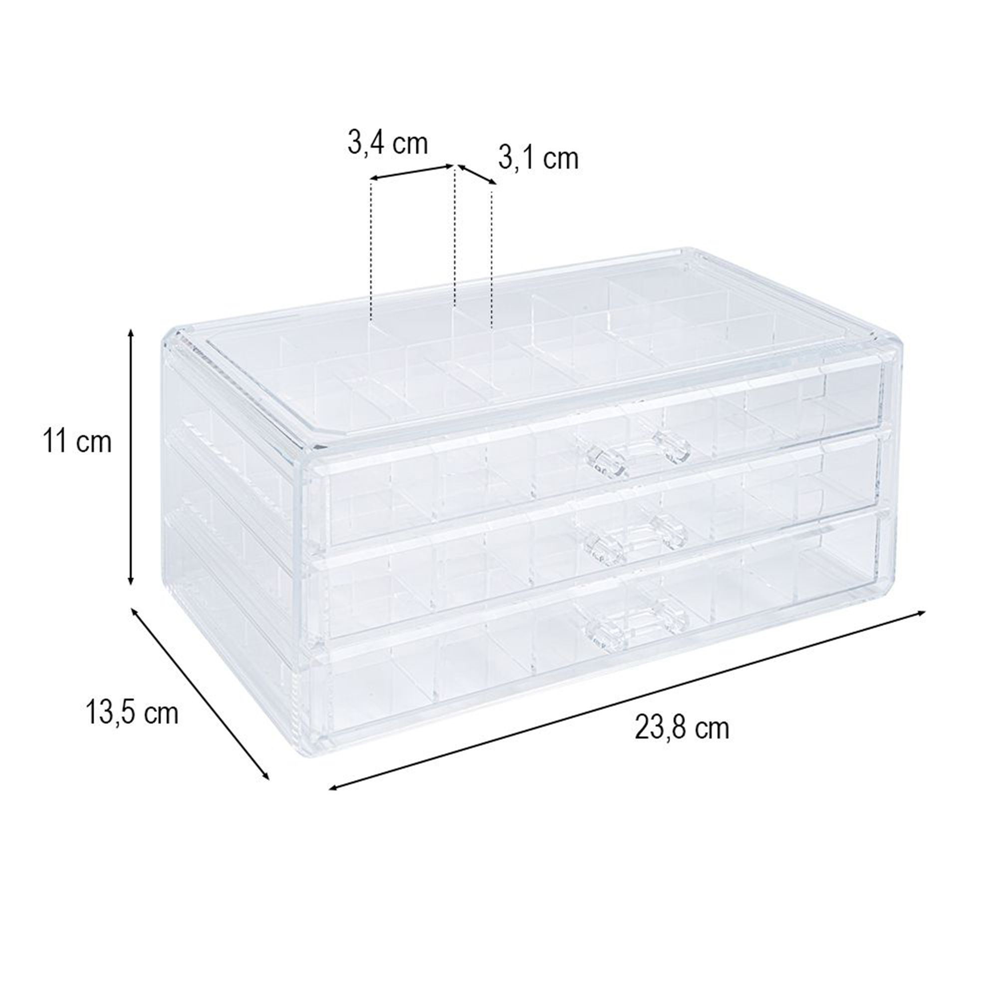 • 3 Boxen mit je 3 Schubladen, 23,8 x 13,5 x 11 cm, 72 Fächer à 3,1 x 3,4 x 2,3 cm, 3 Ebenen mit je 24 Fächern