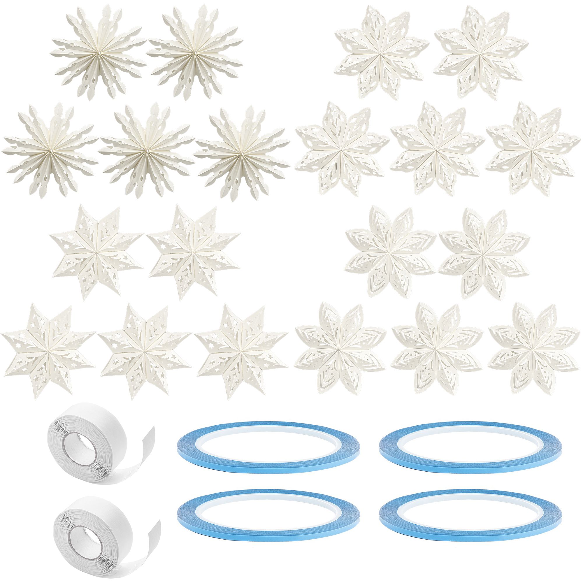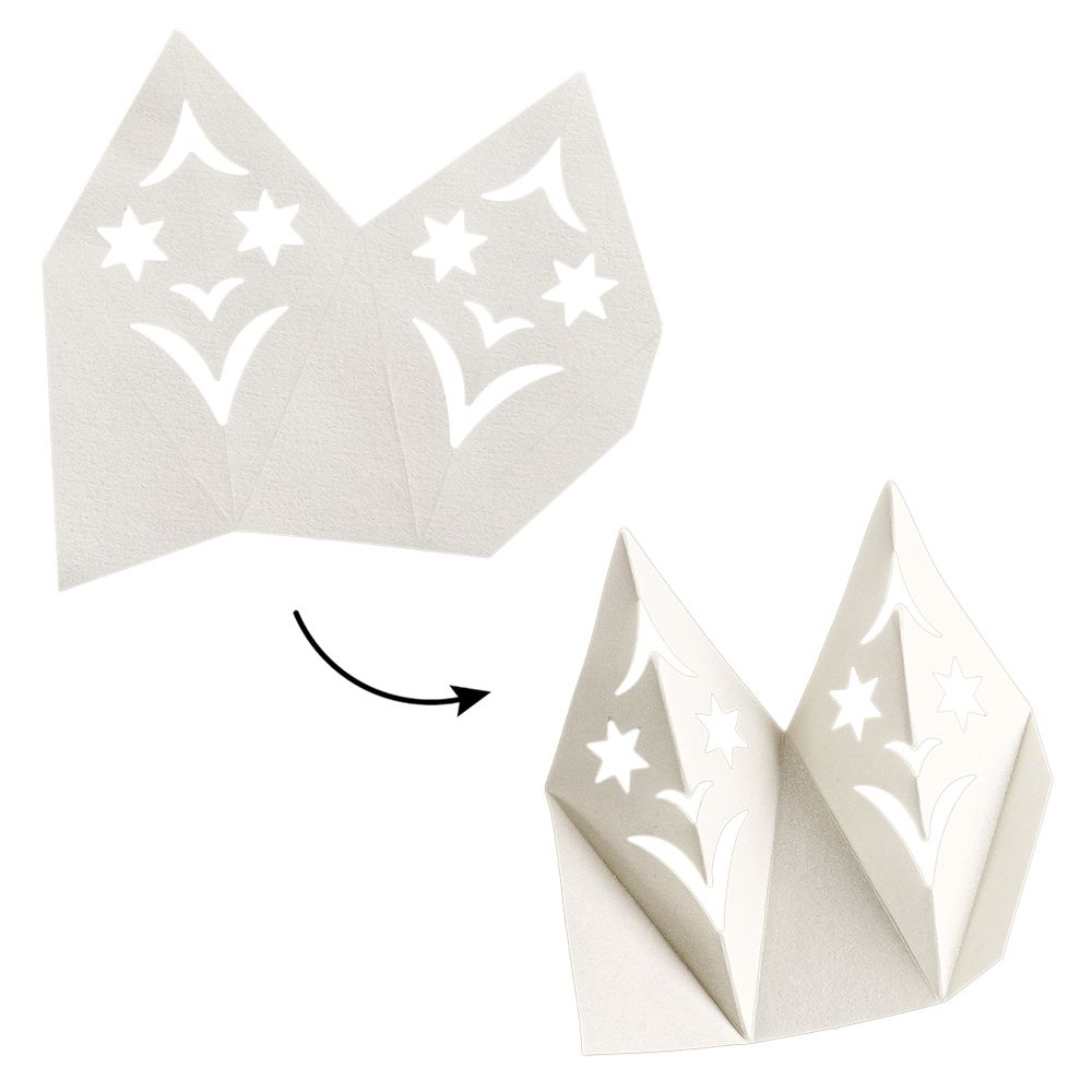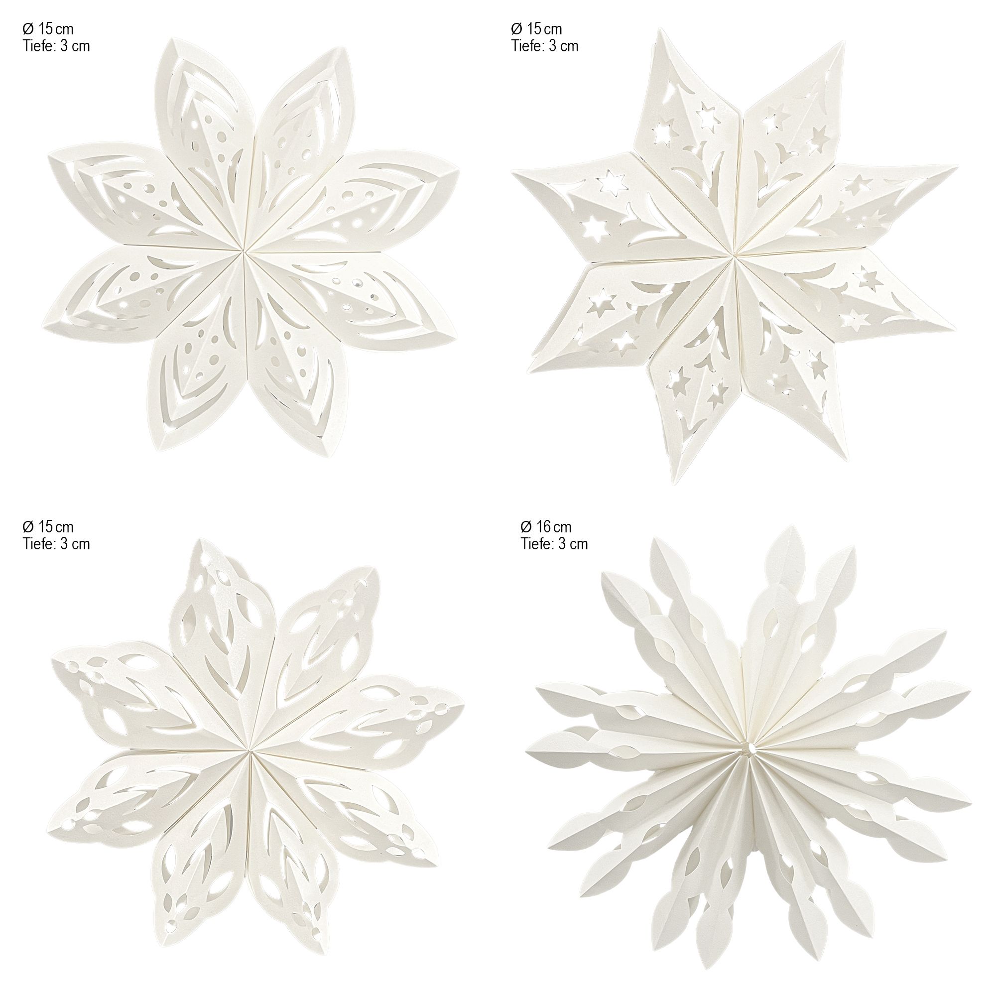 - 4 Packungen Faltelemente Sternenblüten, verschiedene Größen und Designs, je 40 Elemente für je 5 Blüten, Perlmuttpapier, creme, 120 g/m²