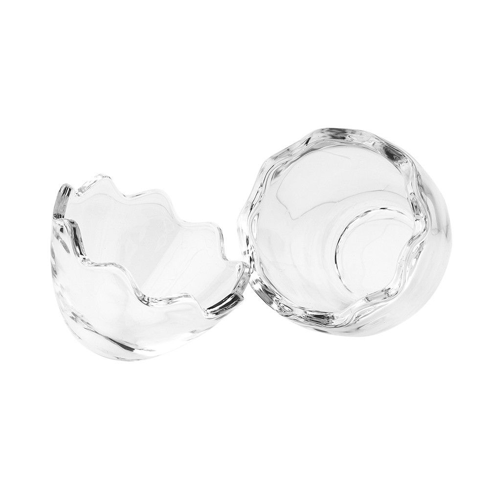 - 2 Glas-Eier, 2-teilig, klar, Ø 8,2 cm, 11,6 cm hoch, abnehmbarer Deckel