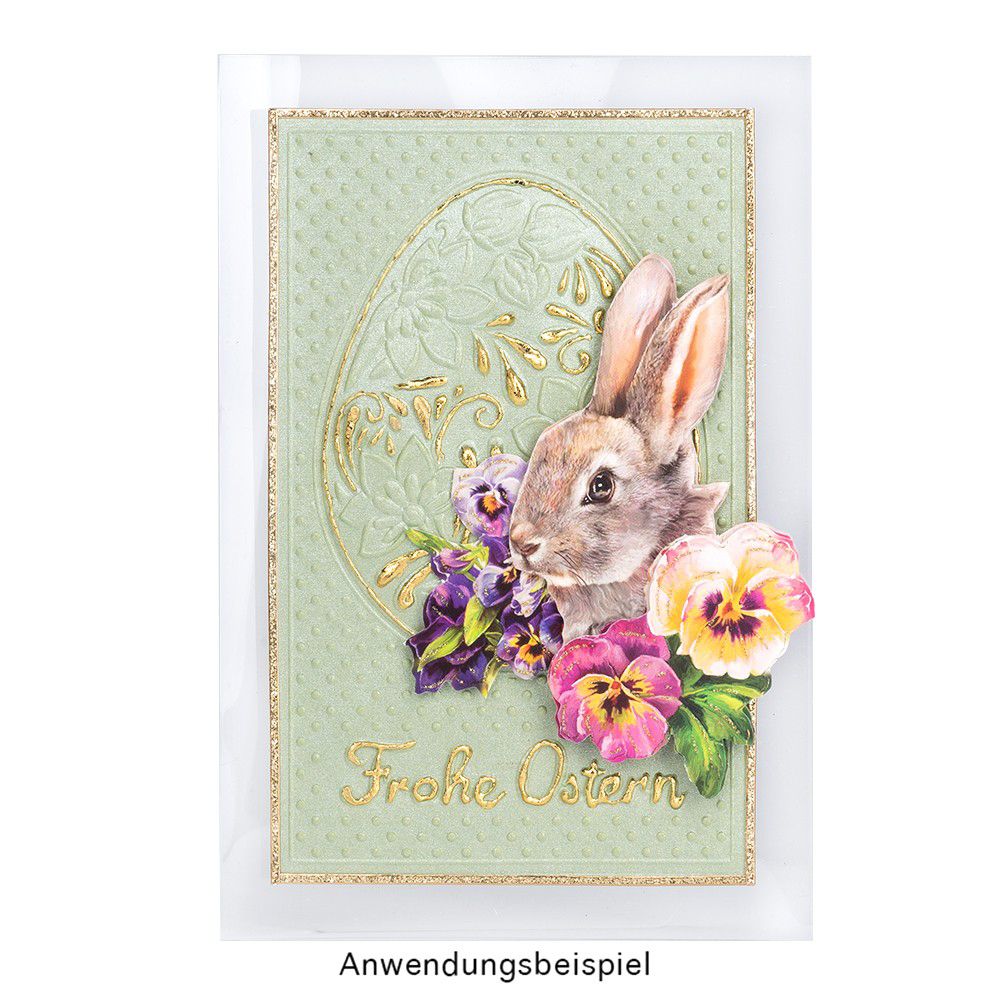 • 2 3D-Prägeschablonen Deluxe, Osterei (15,5 x 10 cm), Frohe Ostern (15,5 x 10 cm), besonders starke Prägung, ideal für Papiere zwischen 120 g/m² und 270 g/m², nicht geeignet für Spiegelkarton