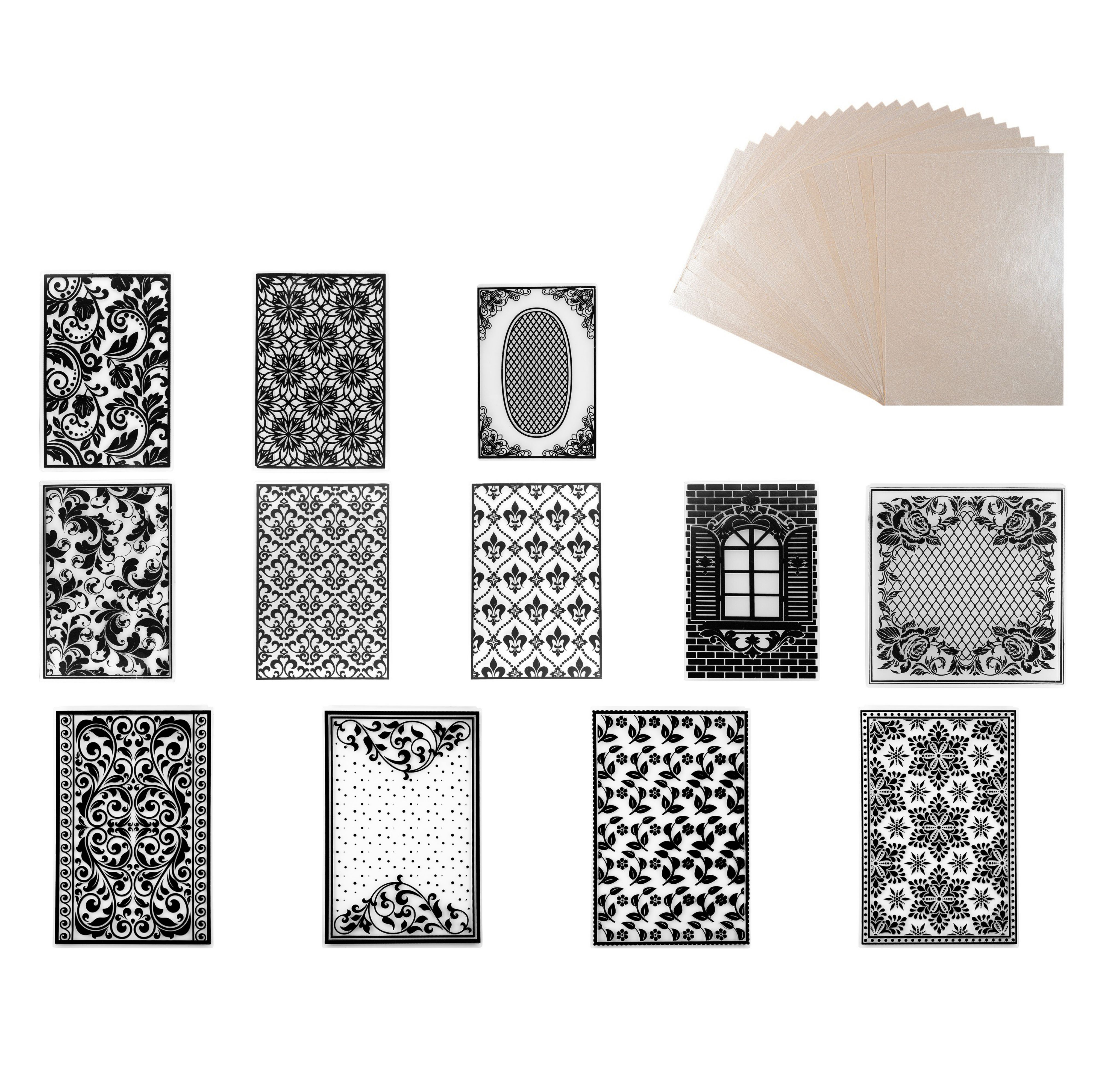 12 Prägeschablonen Hintergründe, verschiedene Designs und Größen