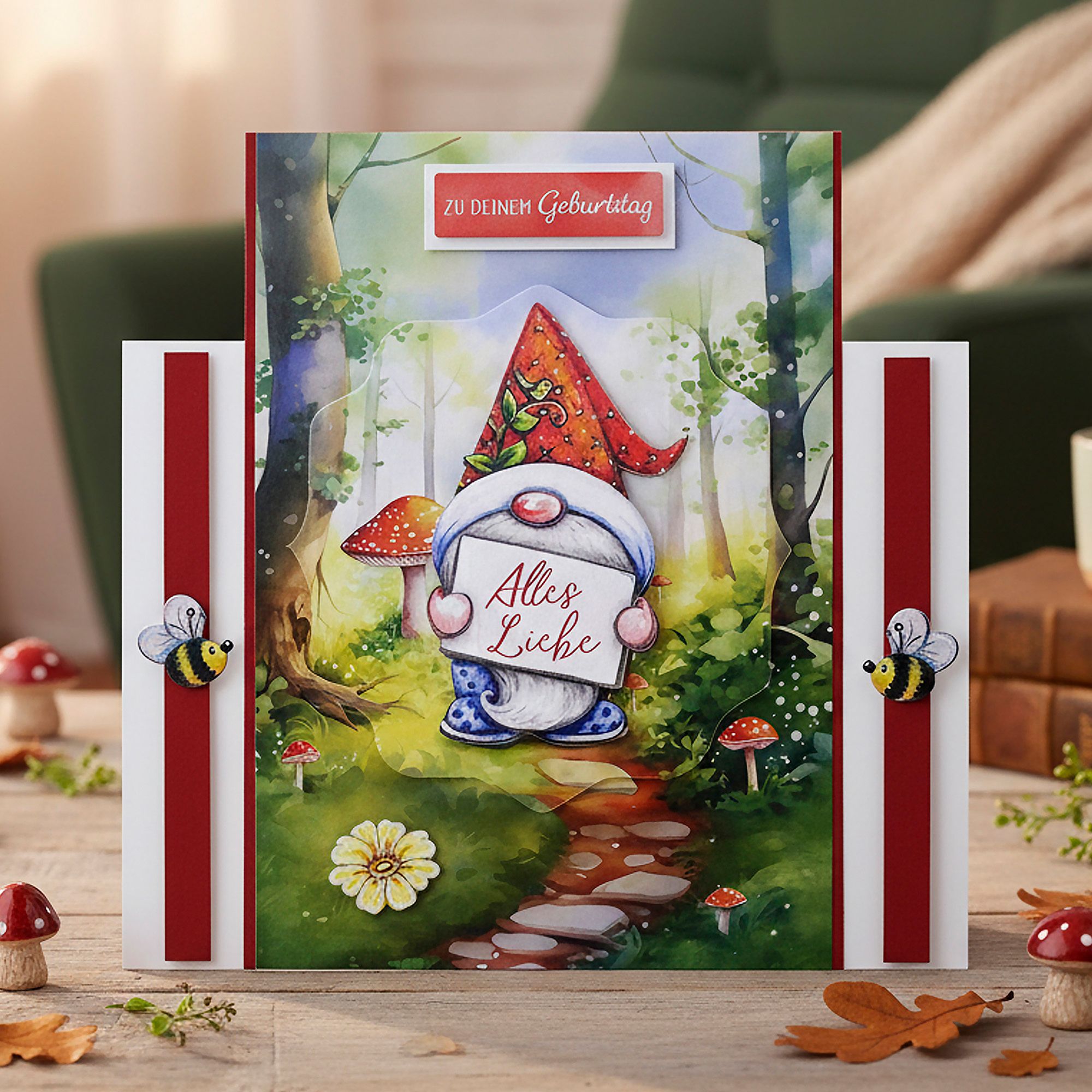 Grußkarten-Set mit Gartenwichteln gestalten