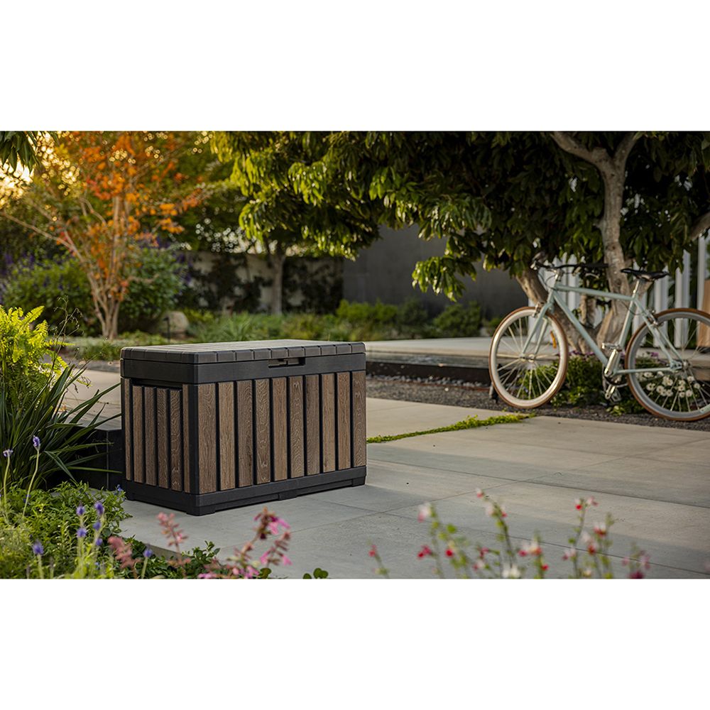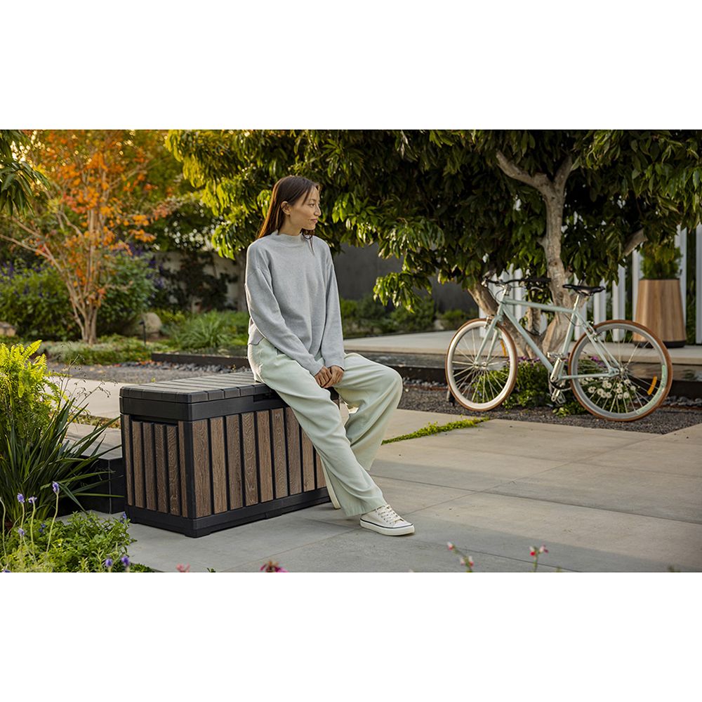 KETER® bringt mit der Garten-Aufbewahrungsbox Kentwood eine clevere und attraktive Lösung für deinen Außenbereich, die jede Terrasse oder jeden Balkon bereichert und dabei Platz für Kissen, Spielzeug oder Gartenzubehör schafft.
