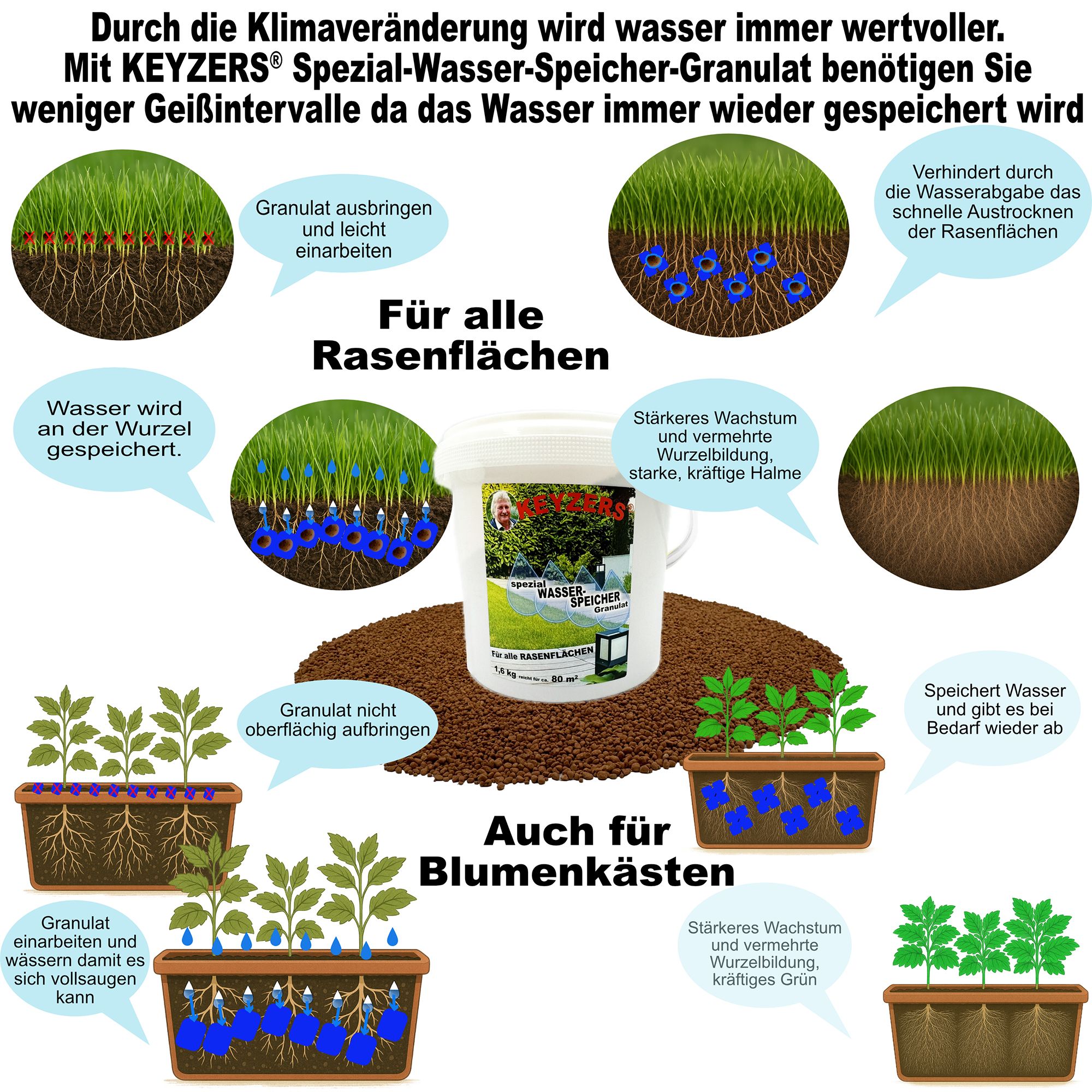 KEYZERS® Spezial Wasserspeicher für Rasenflächen Granulat 1,6kg
