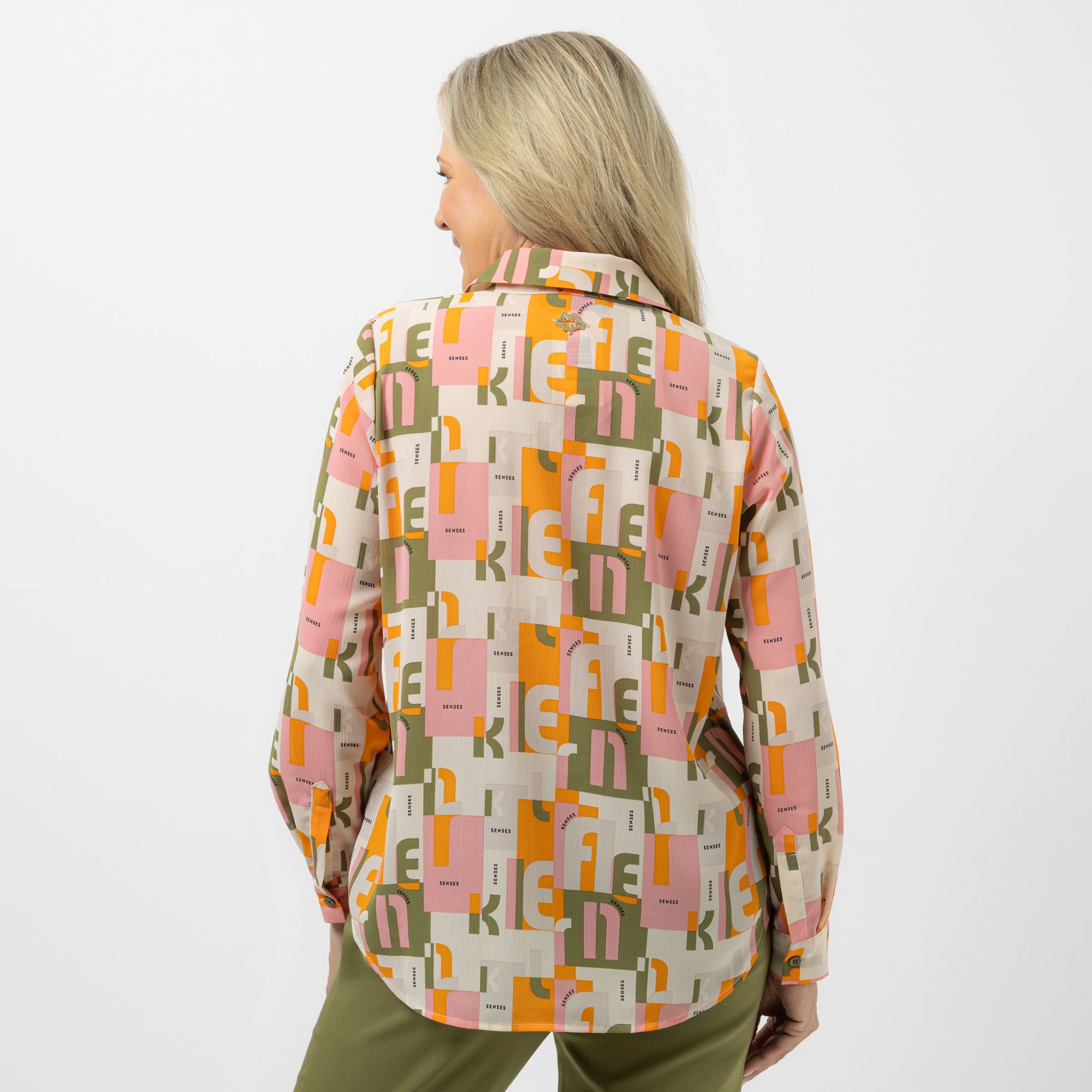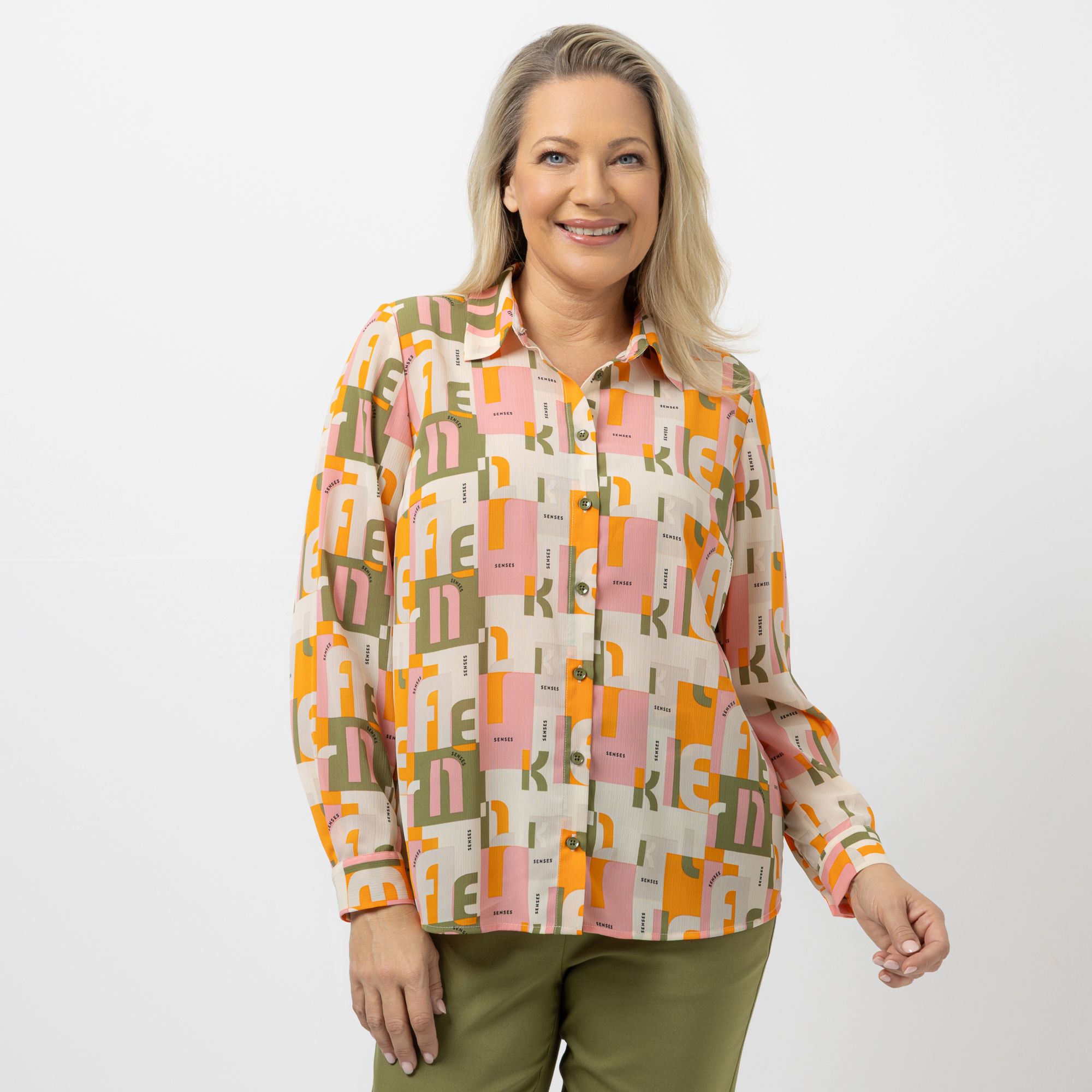 Für fröhliche Feiern wie gemacht: Die KILIAN KERNER SENSES Bluse ist bunt gemustert. Mit ihrem lässigen Hemdblusenkragen und langen Ärmeln passt sie zu jeder Jeans und zu sportlichen Chinos.