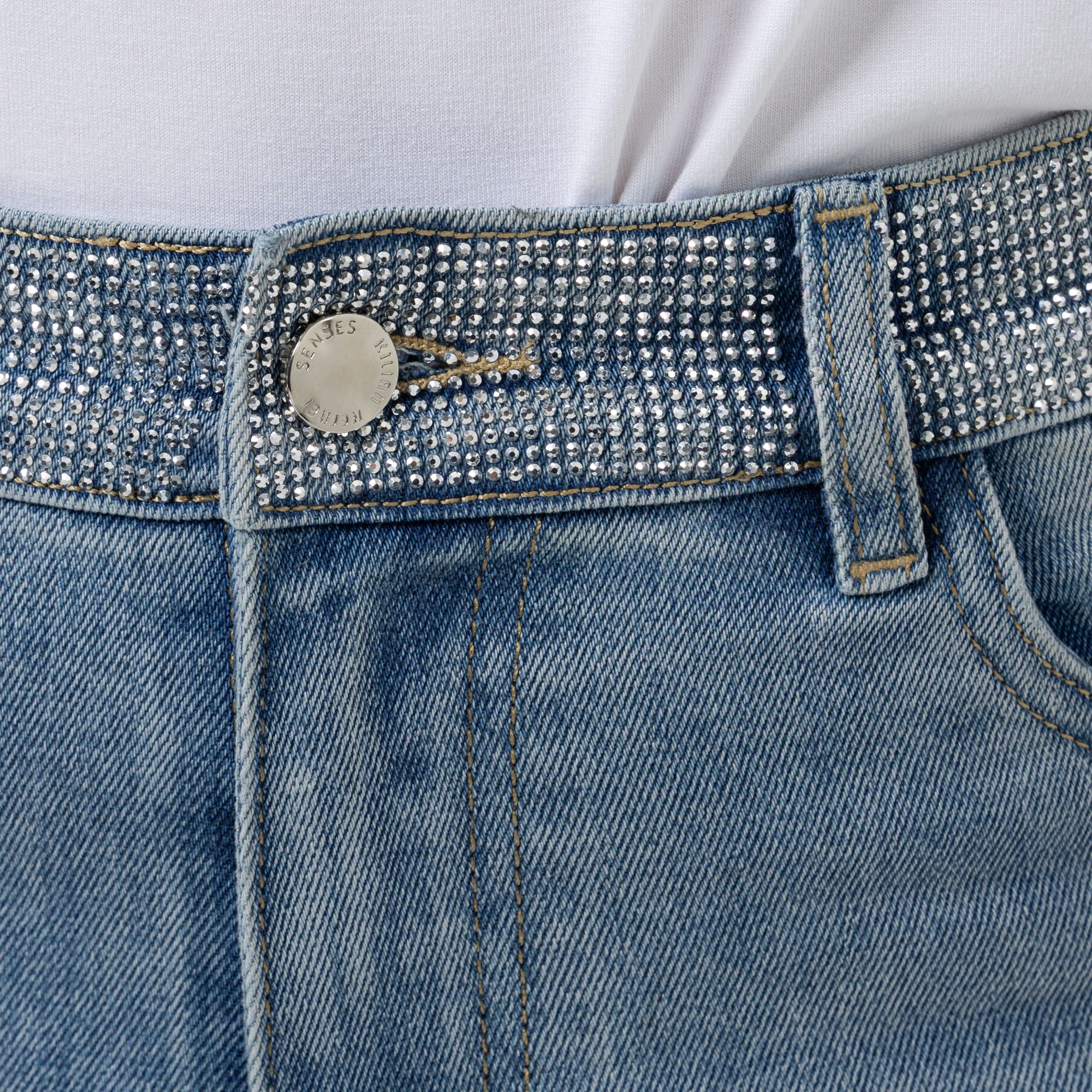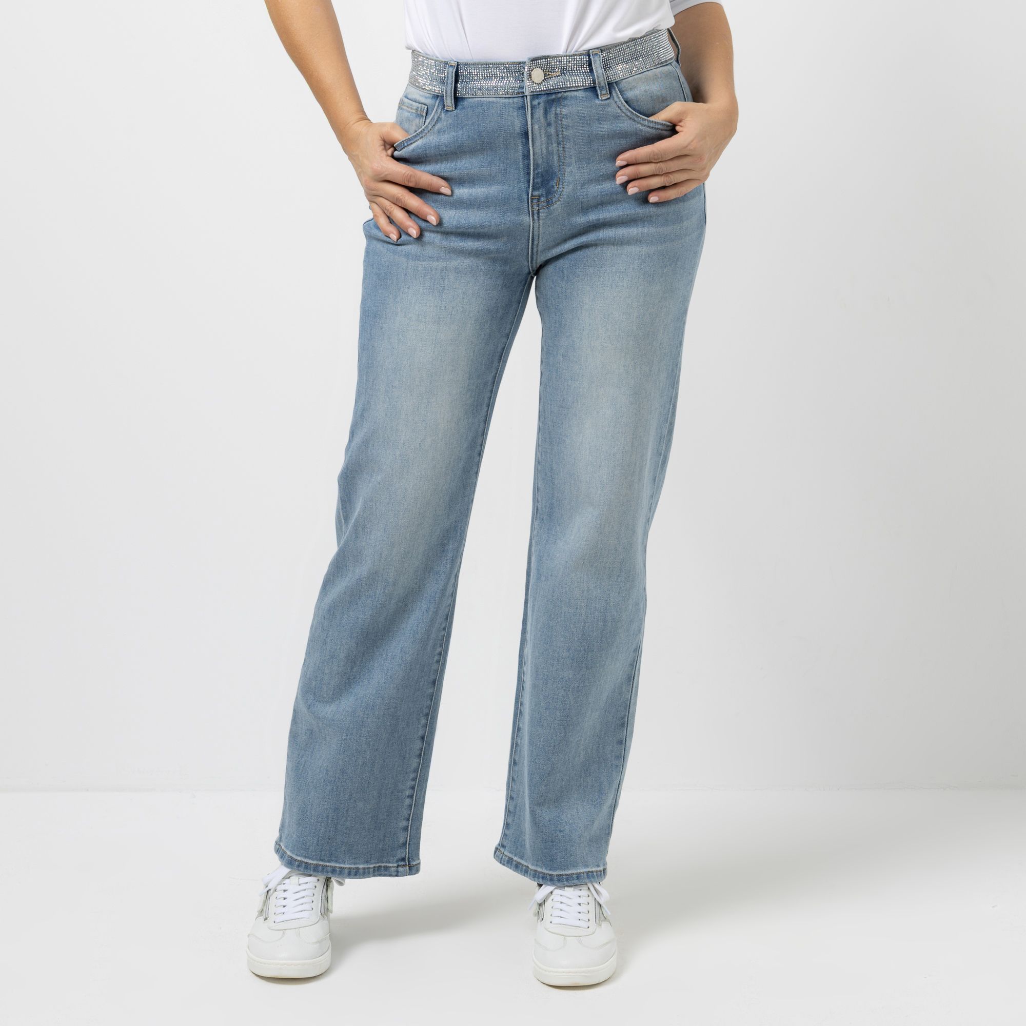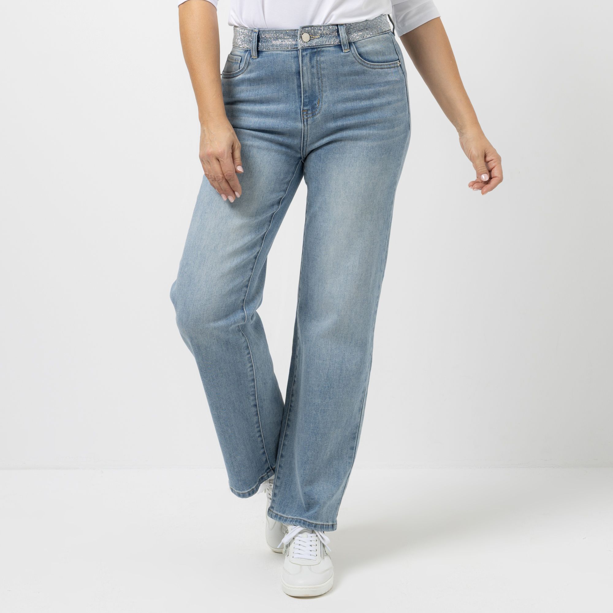KILIAN KERNER SENSES Jeans, lange Form Strassbesetzer Bund 5-Pocket-Stil weites, gerades Bein