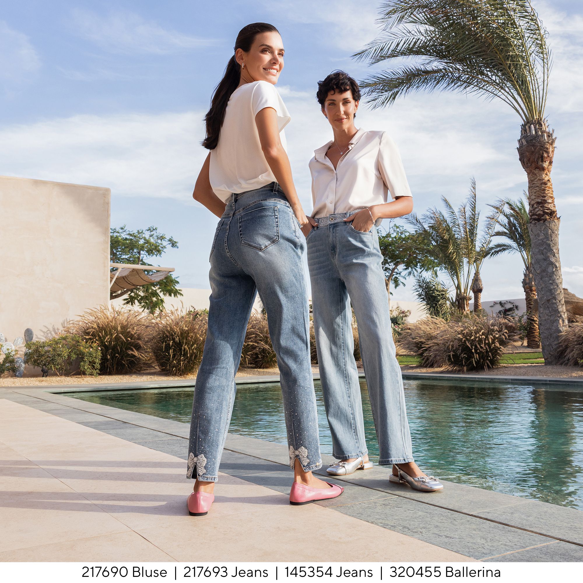 • 5-Pocket-Style: 2 Eingrifftaschen, Münztasche vorne, 2 angedeutete Gesäß-Leistentaschen